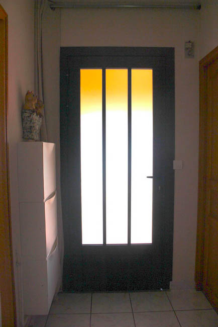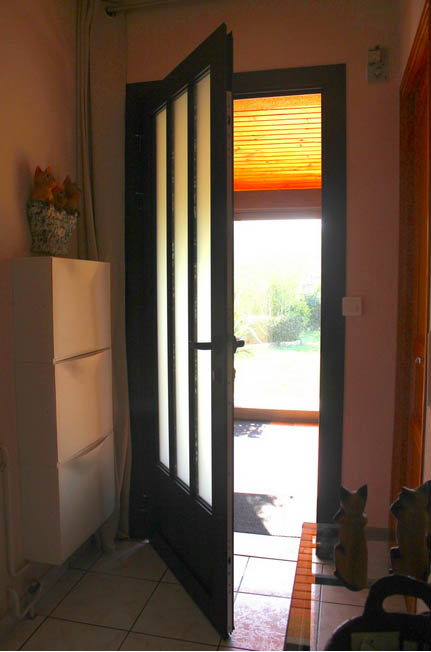 Nous avons posé une porte d'entrée en alu à rupture de pont thermqiue, RAL brun.