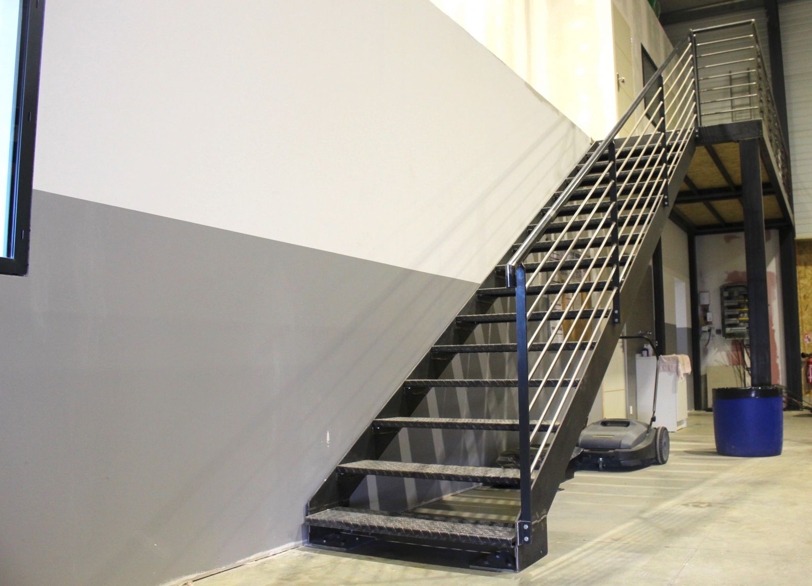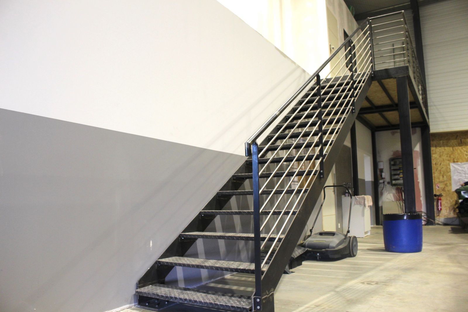 Nous avons posé un escalier industriel, une mezzanine et un garde corps type industriel spécial pro. RAL acier brut. Idéal pour les lofts et les magasins recevant du public. .