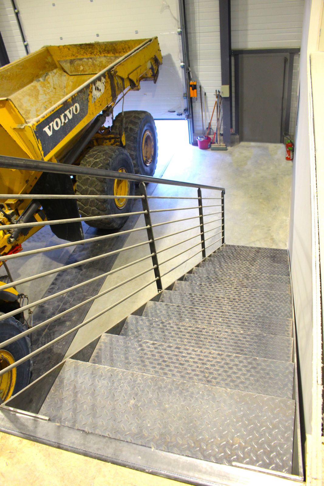 La pose de l'escalier, la mezzanine et le garde-corps a été réalisée en 2020.