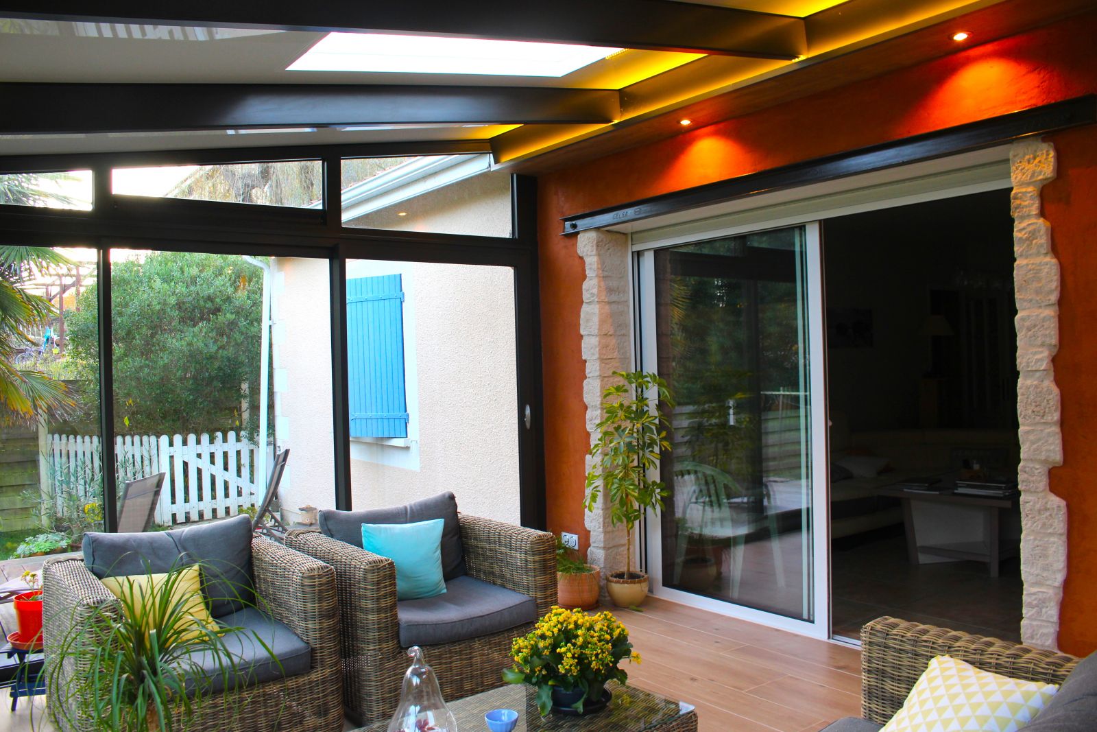 L'Atelier de la création, spécialiste en menuiseries extérieures en Gironde a réalisé la conception et pose d’une véranda simple pente et structure en aluminium à TABANAC (33).