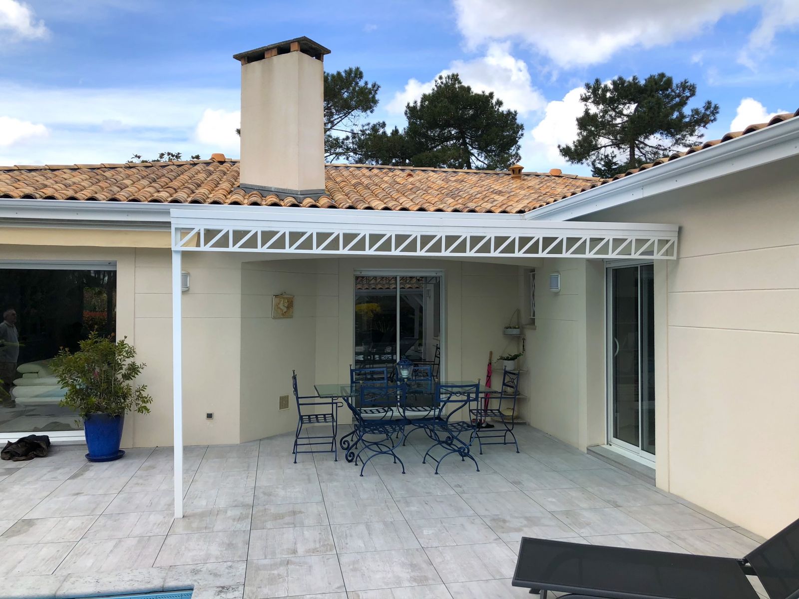 La pose de cette pergola acier avec vitrages a été réalisée en 2020.