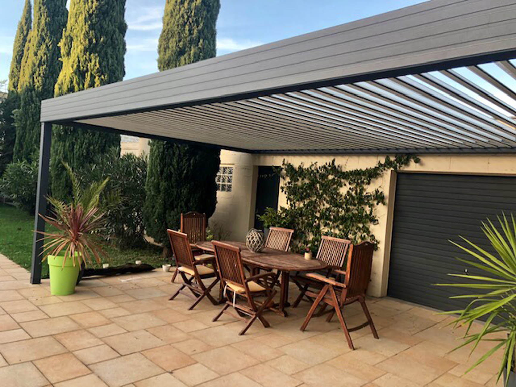 La pose de cette pergola bioclimatique a été réalisée en 2020.