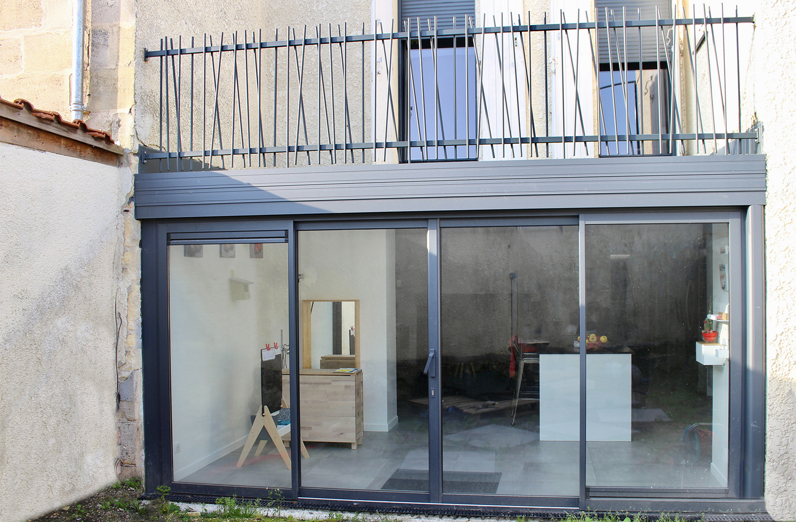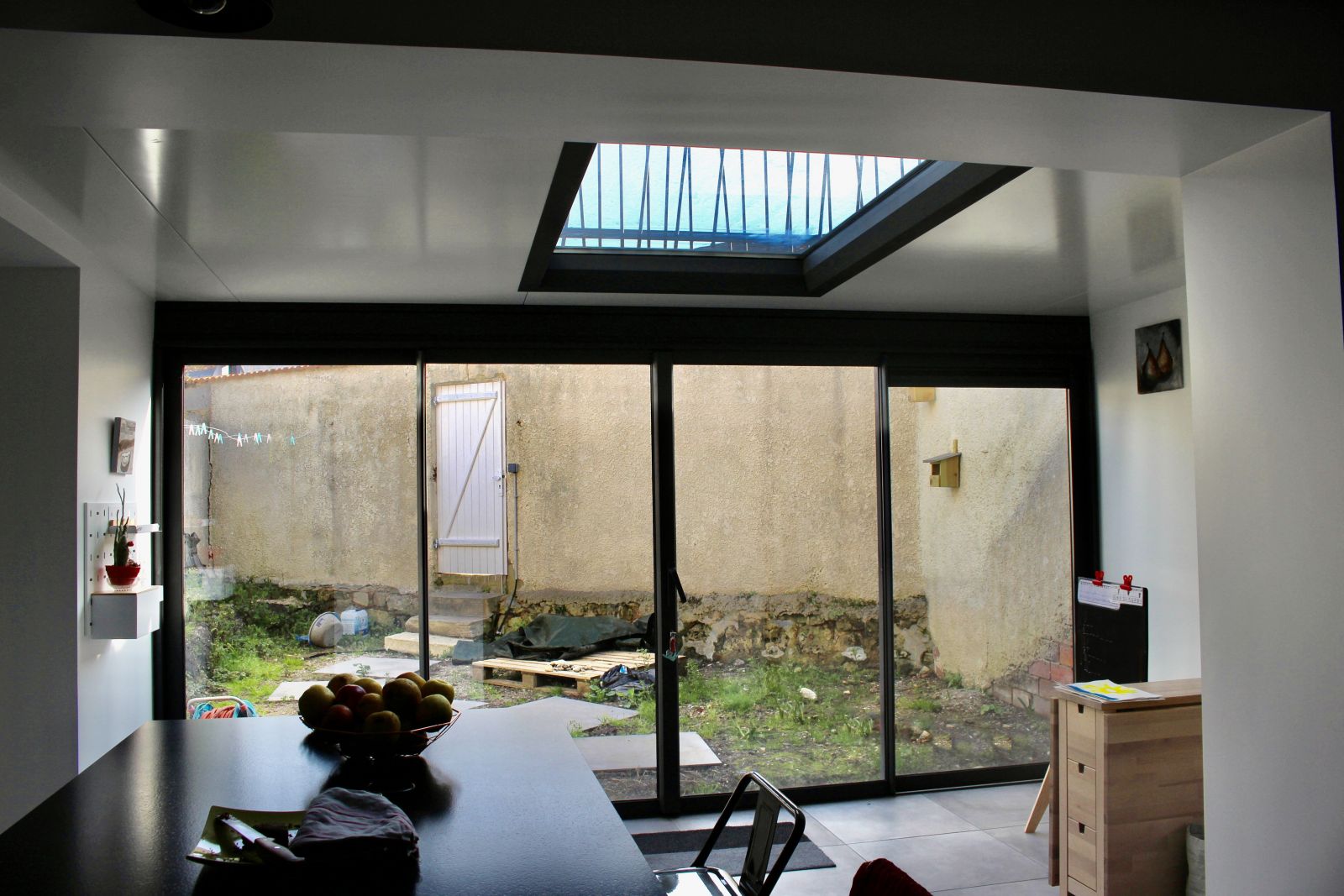 L'Atelier de la création, spécialiste en menuiseries extérieures en Gironde a réalisé la conception et pose d’une véranda toit plat avec puits de jour et garde-corps design à BORDEAUX (33).