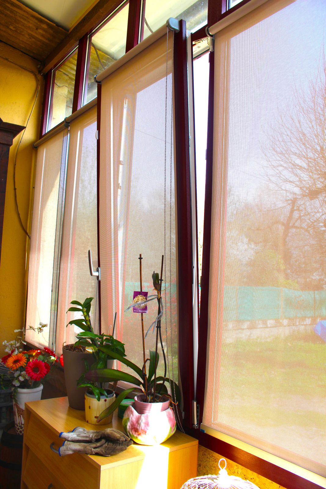 La véranda a été rénovée grâce à des châssis en PVC renforcés à forte isolation. La véranda est de couleur RAL 3004, imitation bois. La toiture est composée de panneaux sandwich couleur tuile avec deux puits de jour intégrés. La structure est en PVC et la toiture en aluminium.