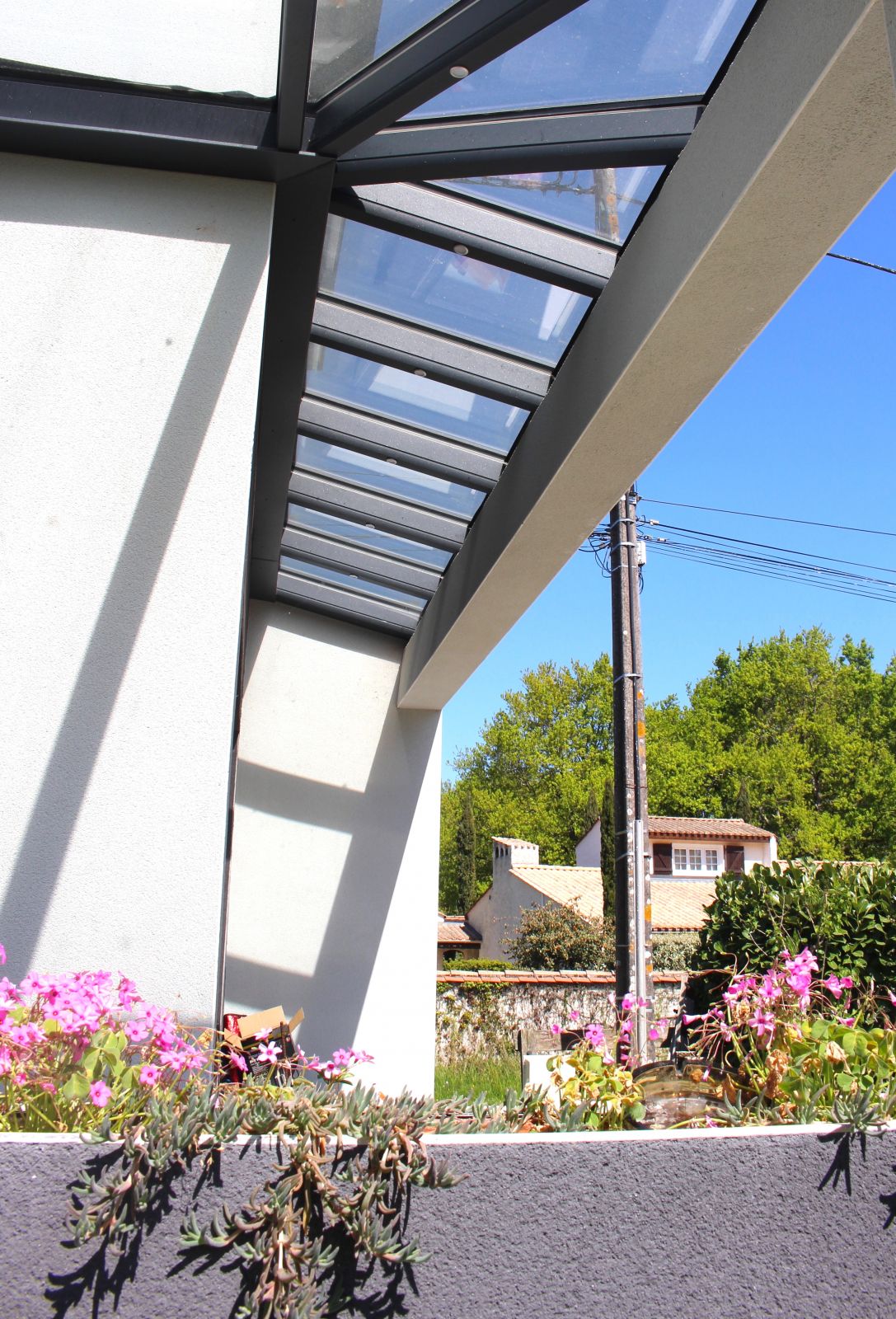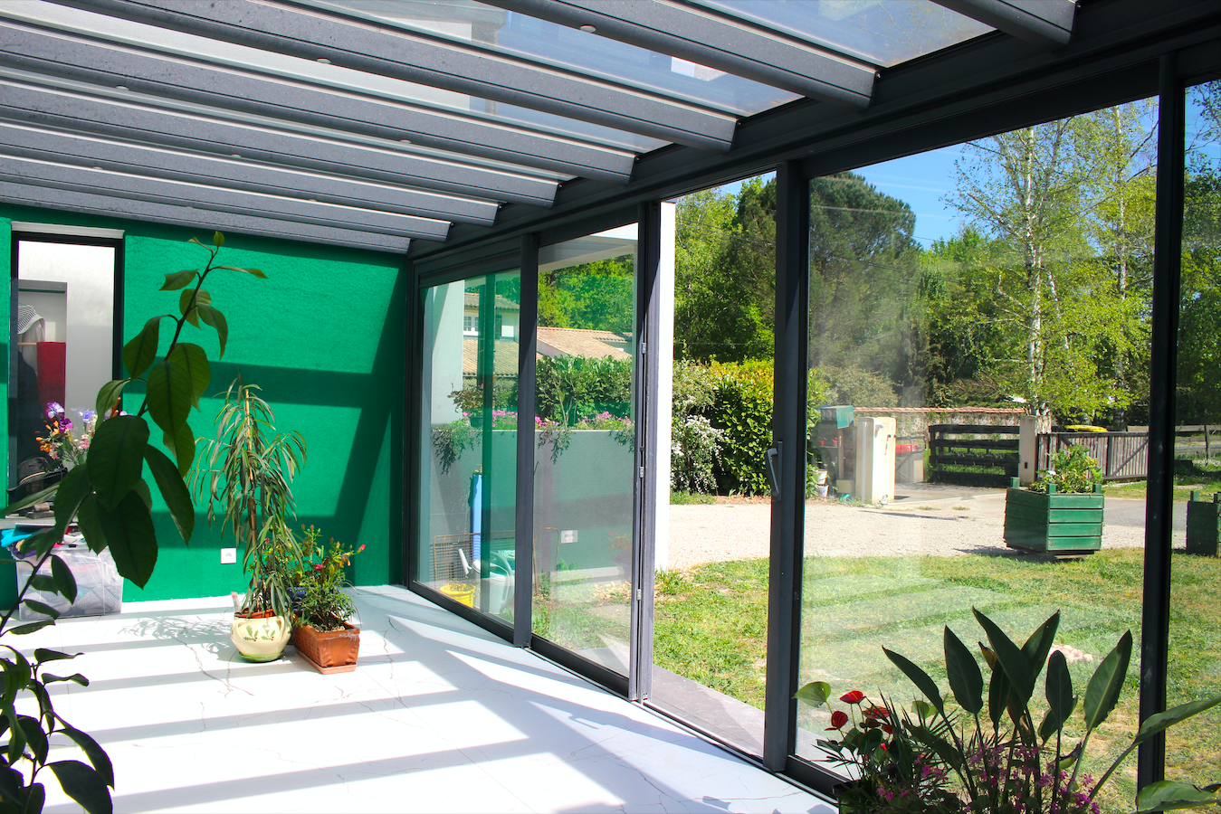 L'Atelier de la création, spécialiste en menuiseries extérieures en Gironde a réalisé la conception et pose d'une véranda, d'un sas d'entrée ainsi que d'une marquise à SAINT SULPICE ET CAMEYRAC (33).
