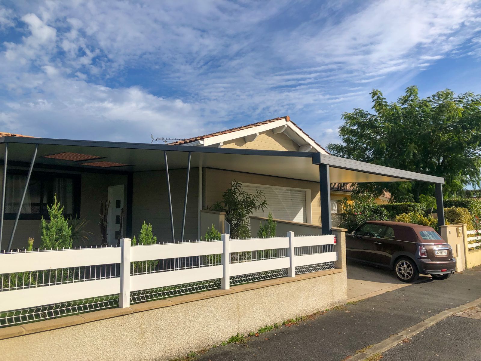 L'Atelier de la création, spécialiste en menuiseries extérieures en Gironde a réalisé la conception et pose d'un carport adossé en aluminium avec toiture en panneau sandwich à SALAUNES (33).