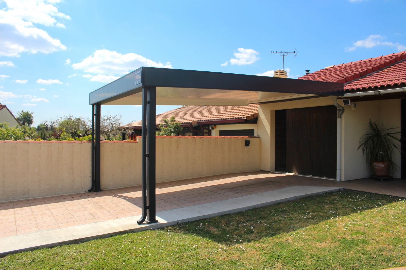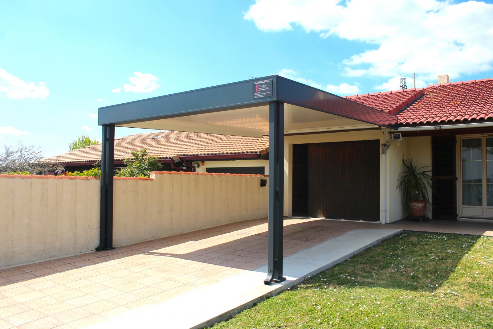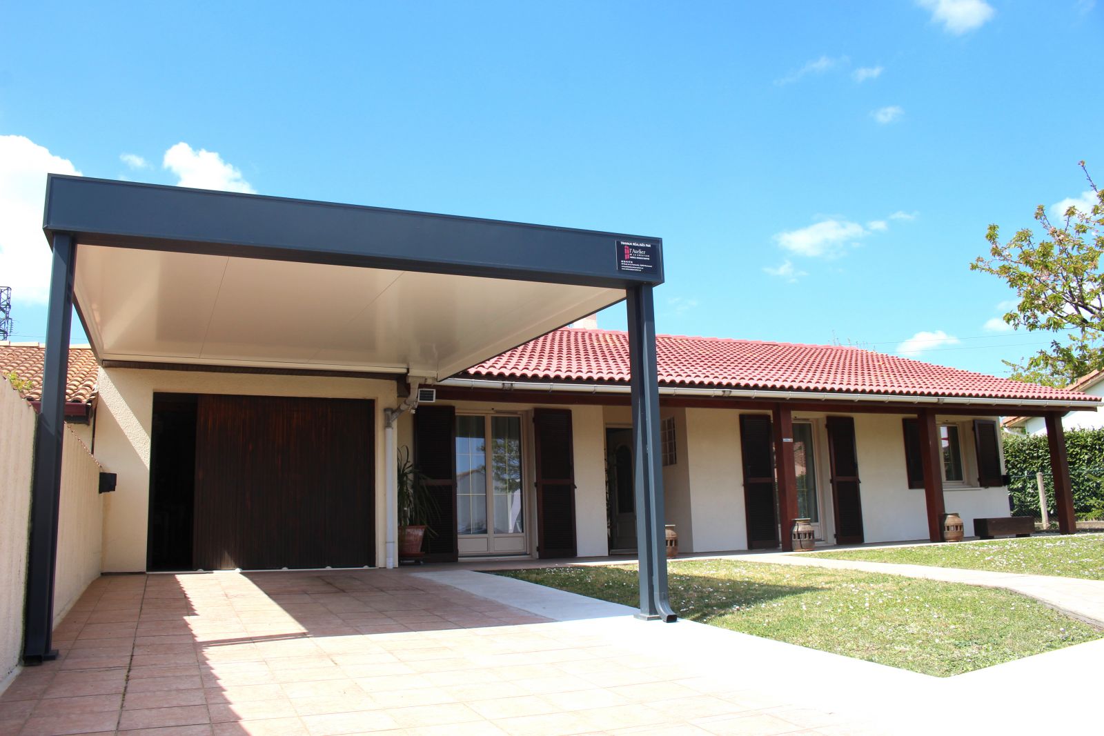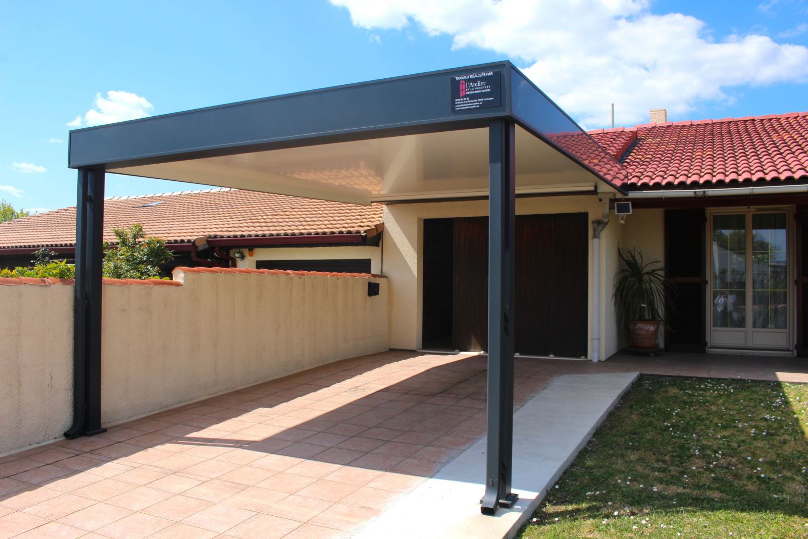 L'Atelier de la création, spécialiste en menuiseries extérieures en Gironde a réalisé la conception et pose d'un carport en ossature aluminium à SAINTE EULALIE (33).