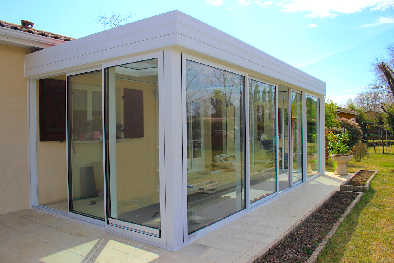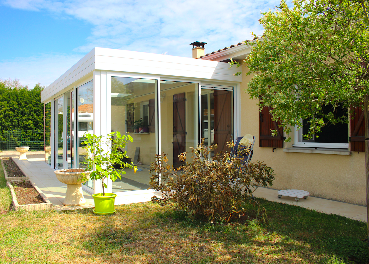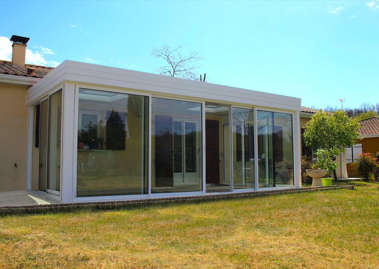 La pose de cette véranda toit plat à été réalisée en 2021.