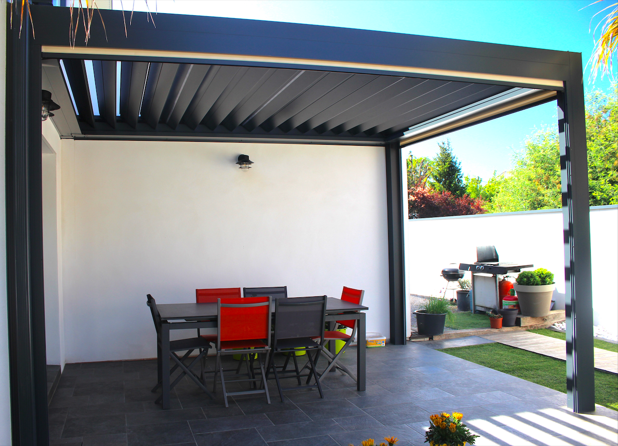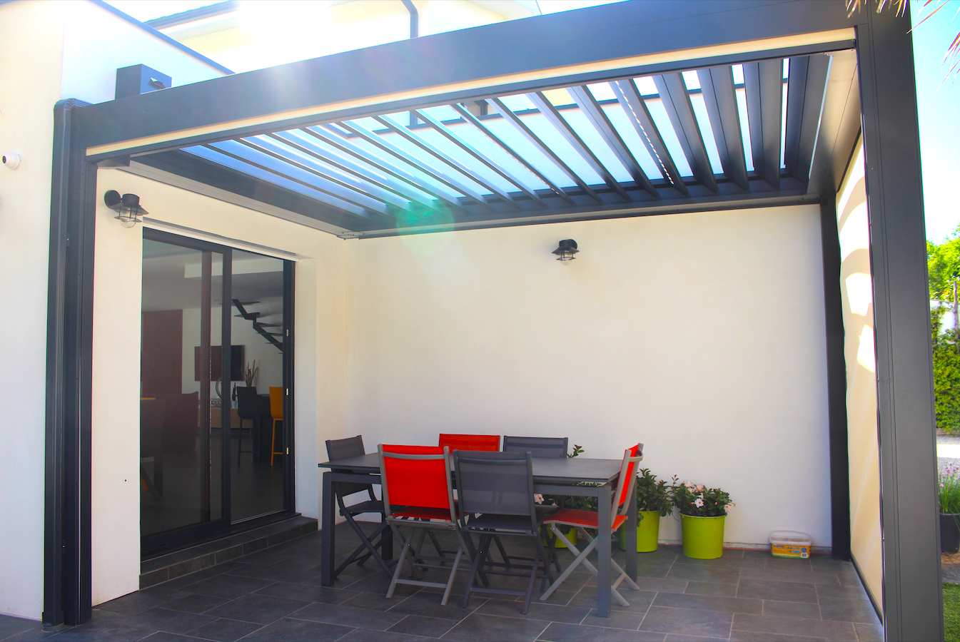 La pose de cette pergola bioclimatique rétractable a été réalisée en 2020.