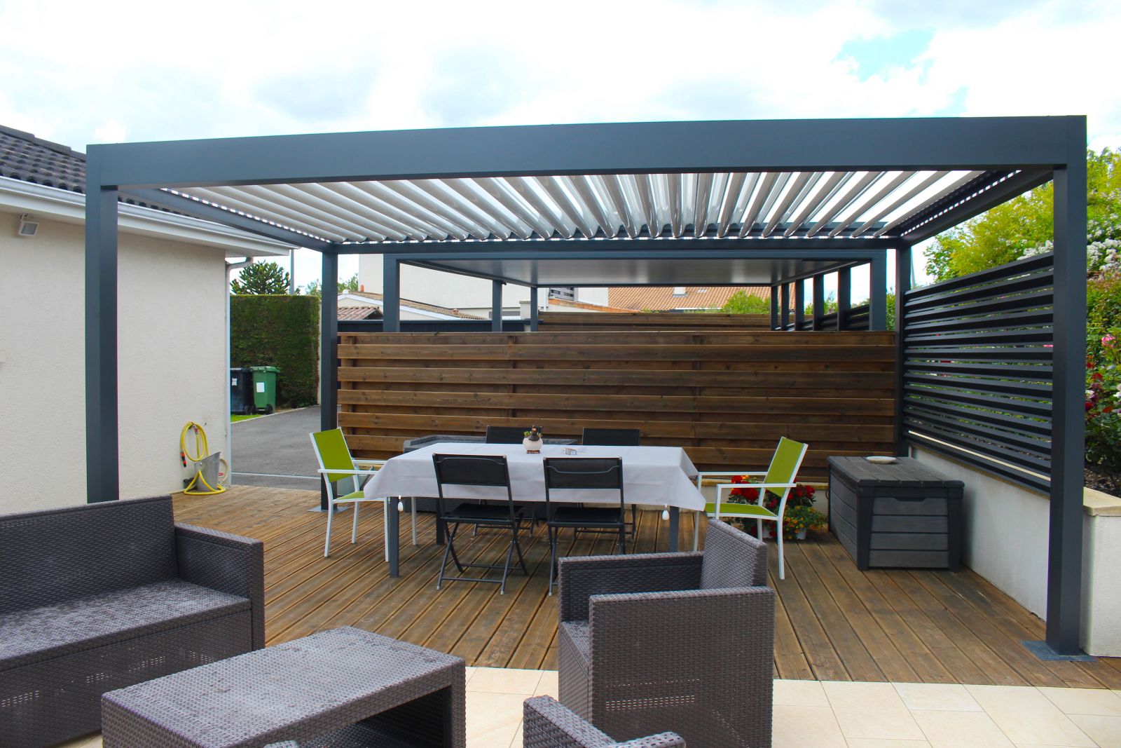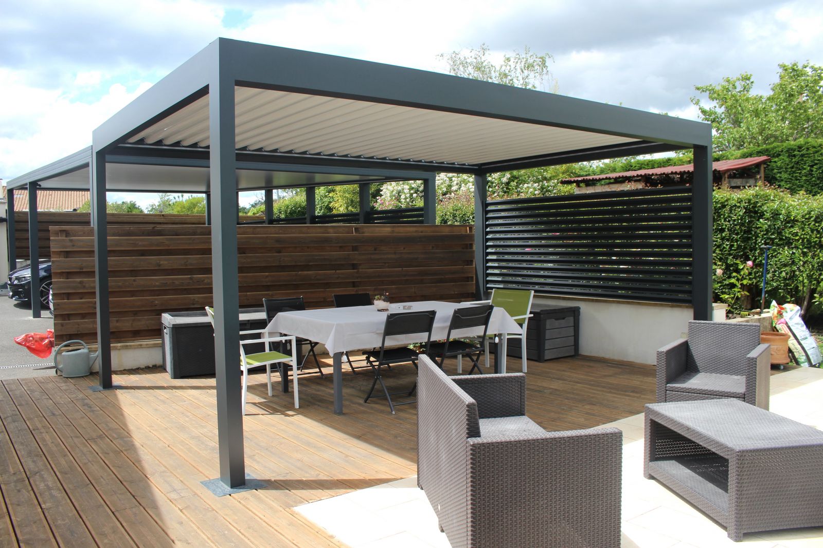 La pose de cette pergola bioclimatique orientable a été réalisée en 2021.