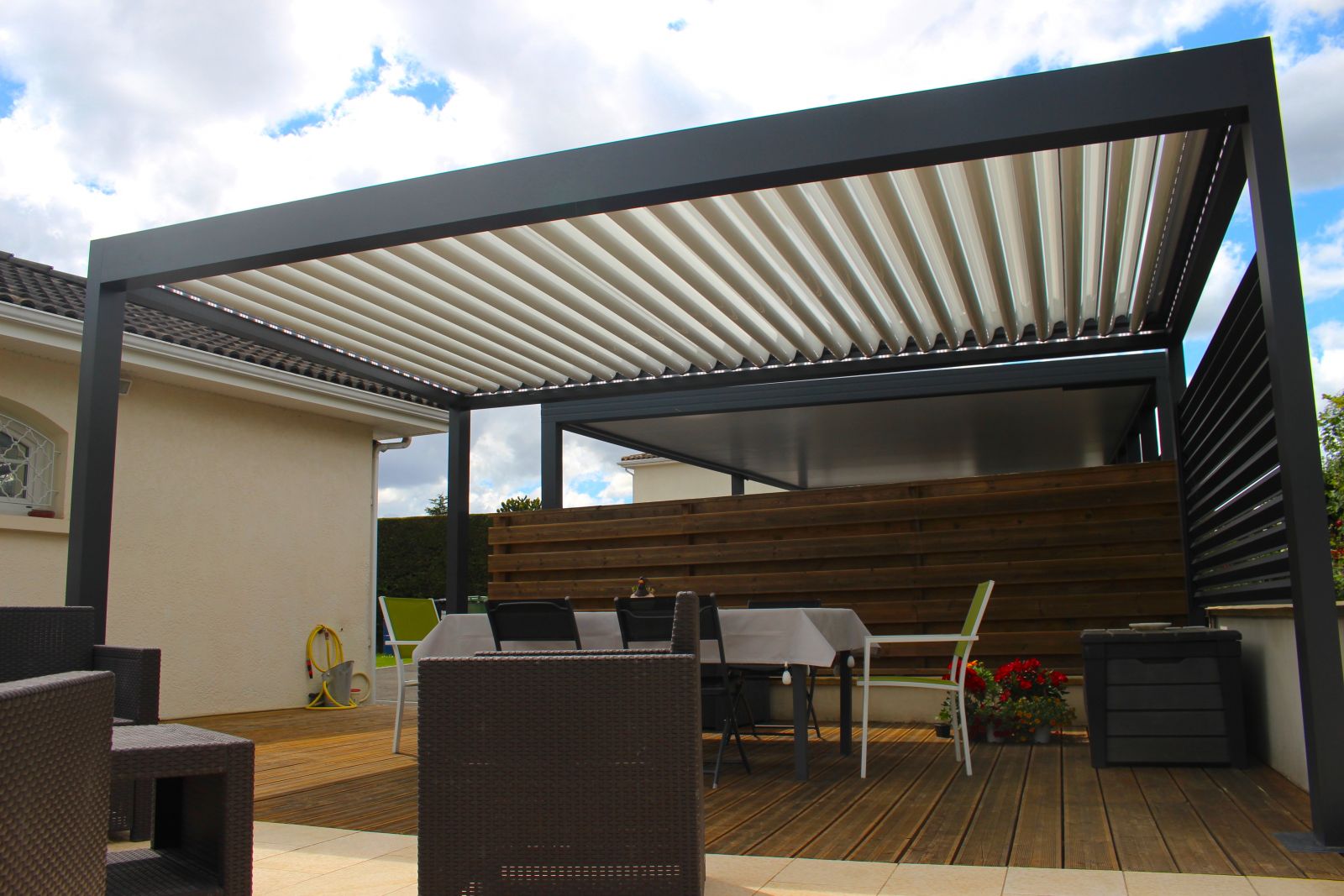 L'Atelier de la création, spécialiste en menuiseries extérieures en Gironde a réalisé la conception et pose d'une pergola bioclimatique orientable sur plots béton à LORMONT (33).