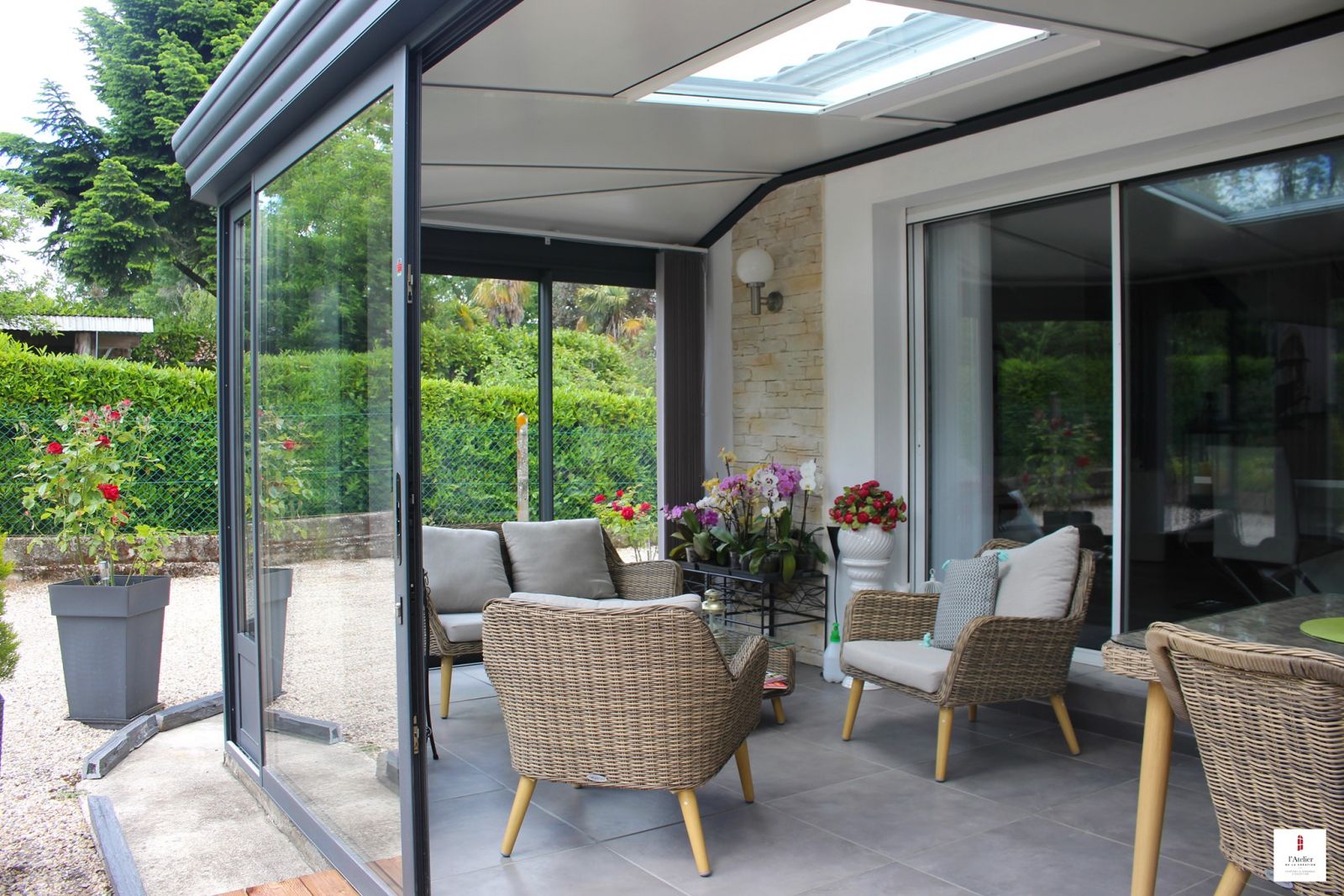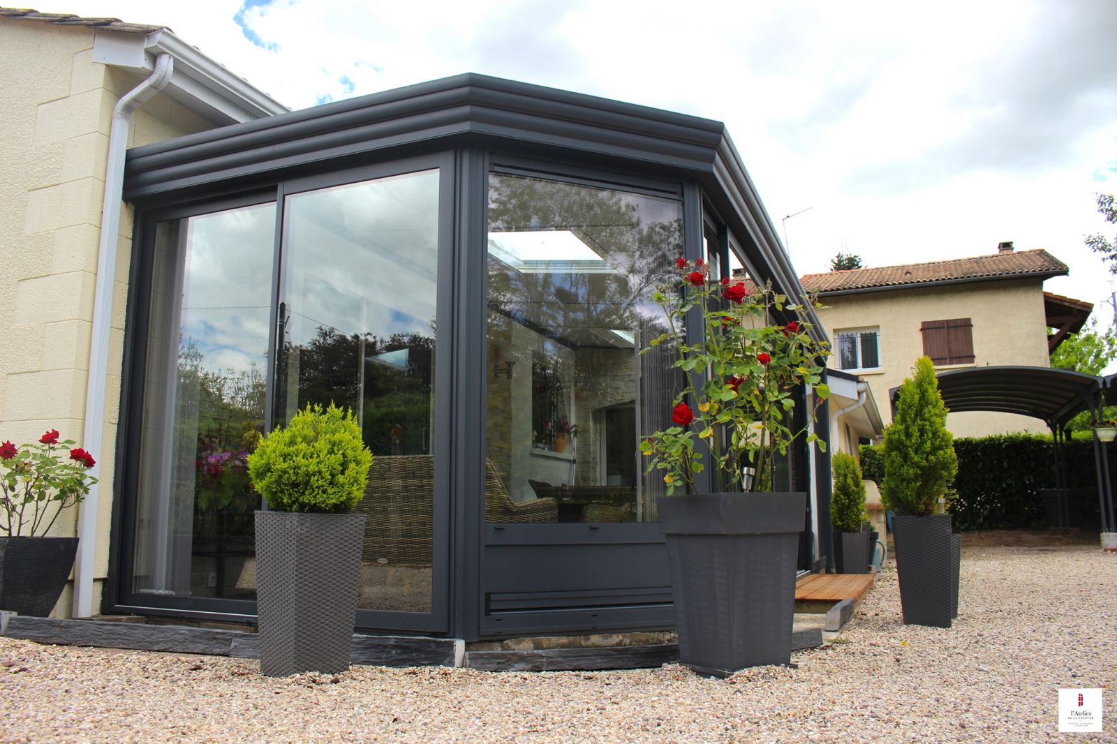 L’Atelier de la Création, fabricant et installateur spécialisé situé à Montussan, a réalisé la conception et le montage d’une véranda aluminium haut de gamme à pans inclinés avec puits de jour intégrés à Saint-Loubès (33).