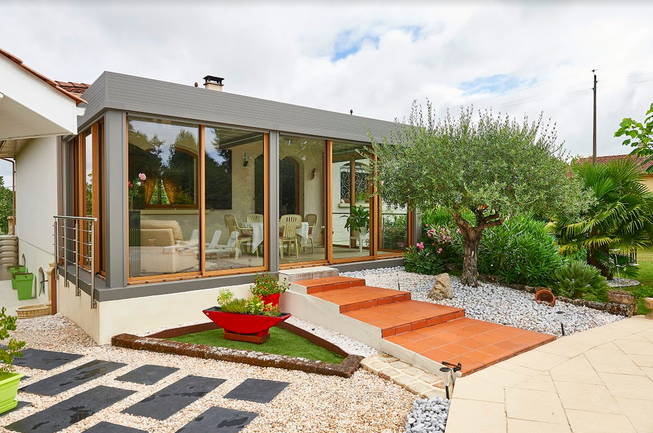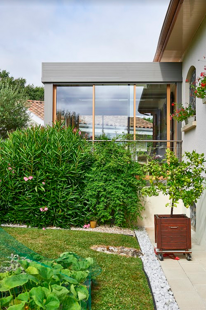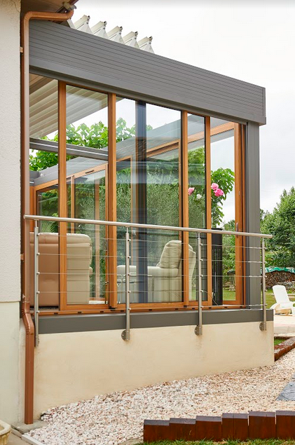 L'Atelier de la création, spécialiste en menuiseries extérieures en Gironde a réalisé la conception et pose d'une véranda décapotable ainsi que d'un garde-corps à Bonnetan (33).