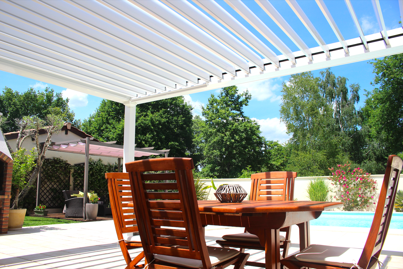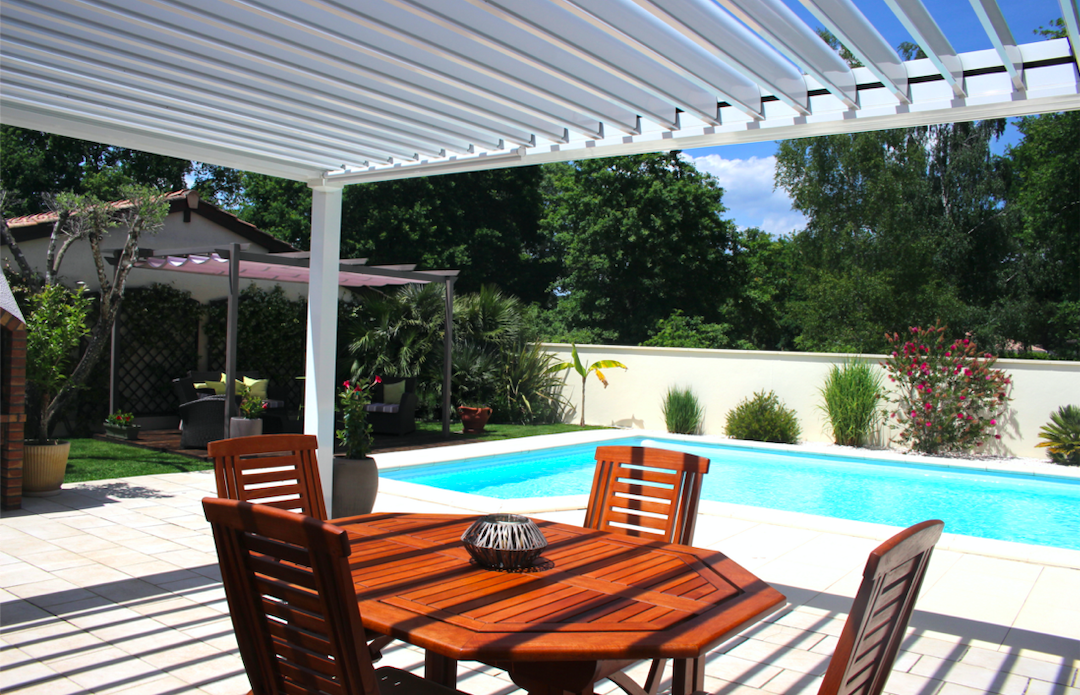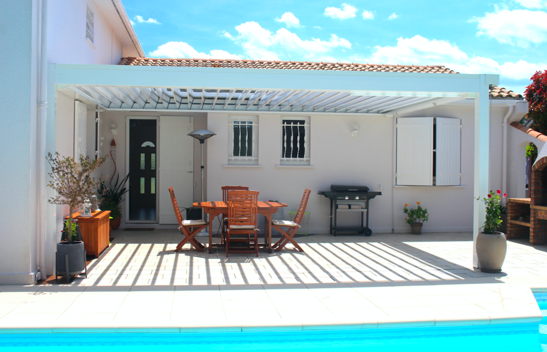 La pose de cette pergola bioclimatique orientable a été réalisée en 2020.