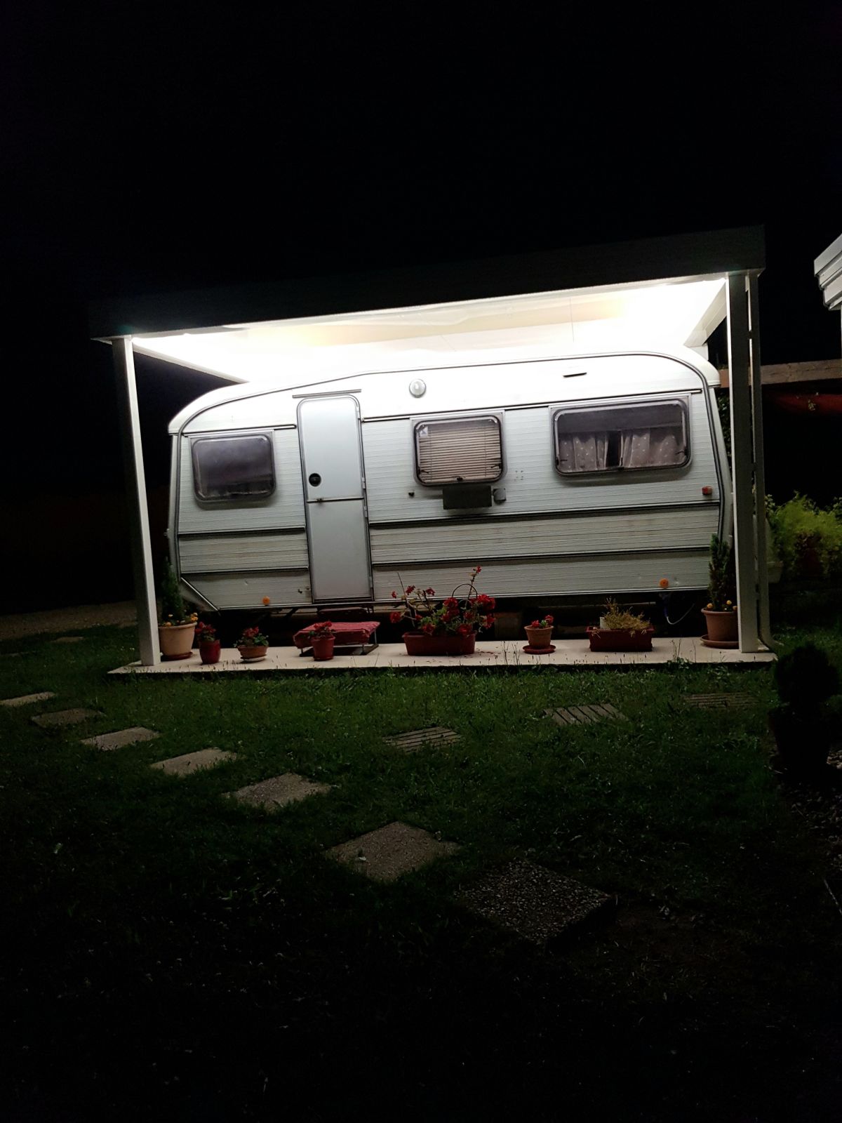Nous avons posé un carport en alu blanc avec leds périmétrales posées avec réhausse et goutiere nantaise .