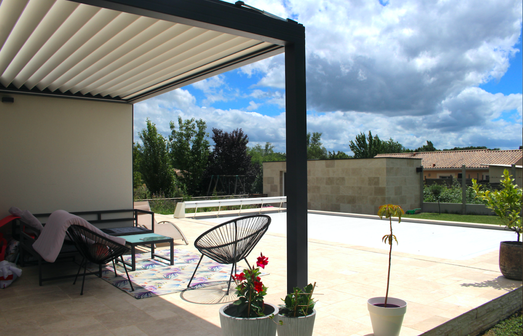 La pose de cette pergola bioclimatique a été réalisée en 2021.