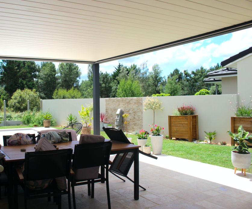 L'Atelier de la création, spécialiste en menuiseries extérieures en Gironde a réalisé la conception et pose d'une pergola bioclimatique orientable 100% étanche à SAINT-LOUBÈS (33).