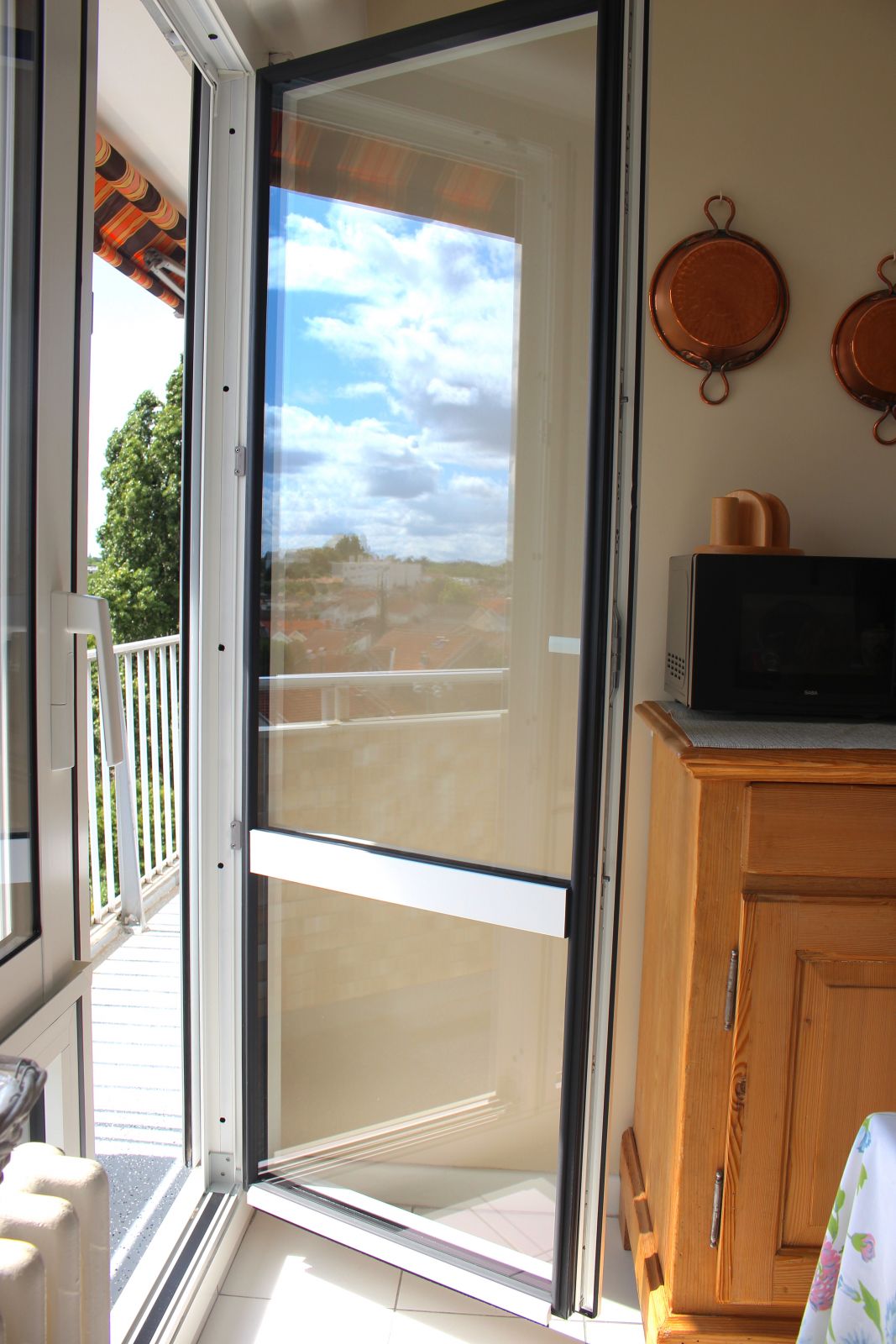 Nous avons effectué un changement de fenêtres et portes-fenêtres en aluminium à rutpure de pont thermique avec double vitrage. La couleur de ces menuiseries (RAL blanc 9016) a été décidé en accord avec la copropriété.