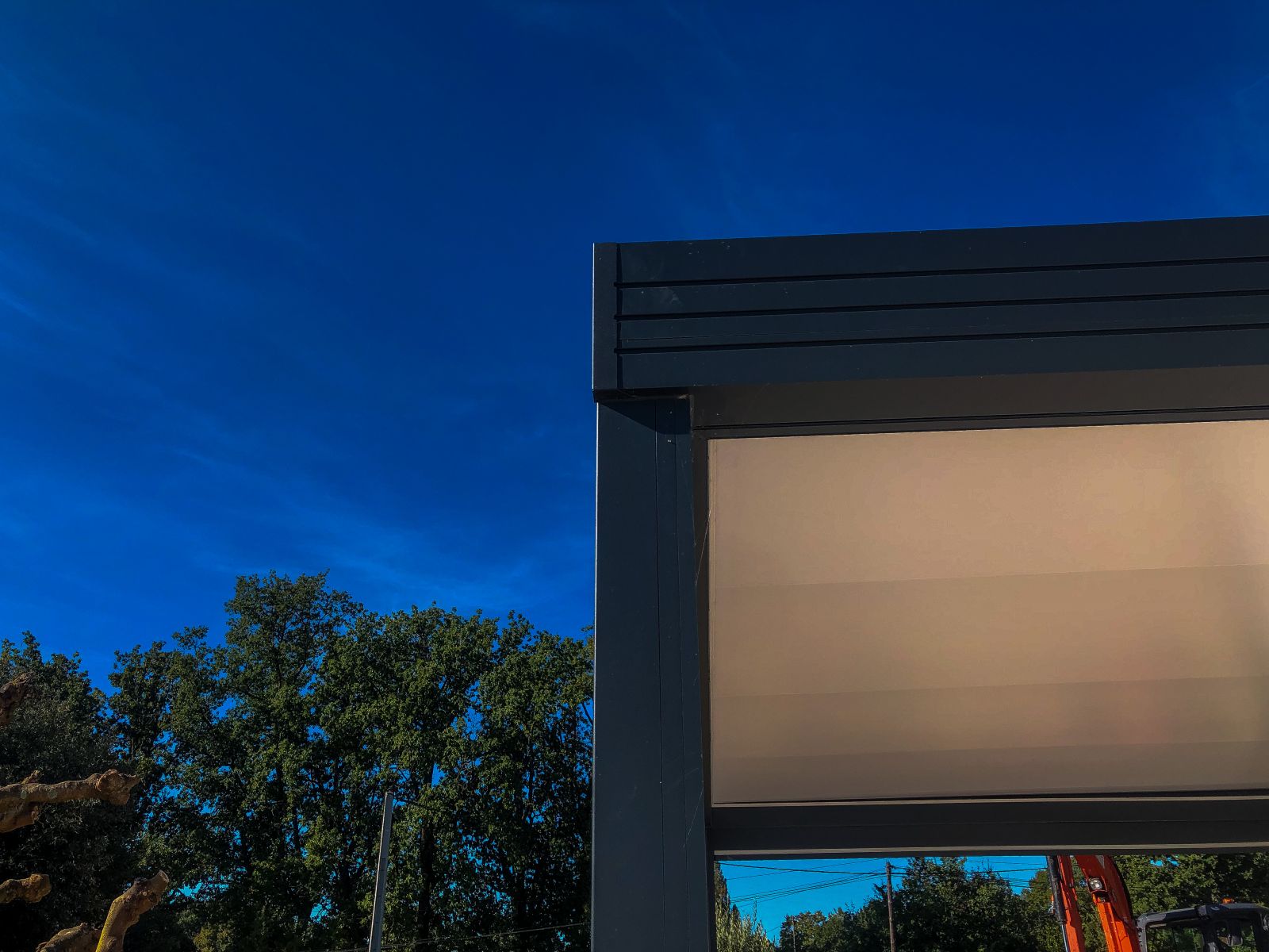 L'Atelier de la création, spécialiste en menuiseries extérieures en Gironde a réalisé la conception et pose d'une pergola à toiture plate à POMPIGNAC (33).