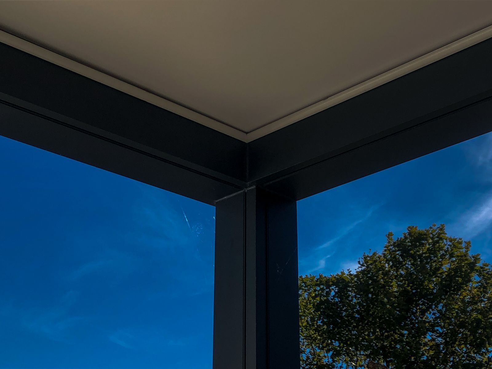 Nous avons posé une pergola en aluminium à toiture plate.- Couleur chassis : Gris anthracite 7016