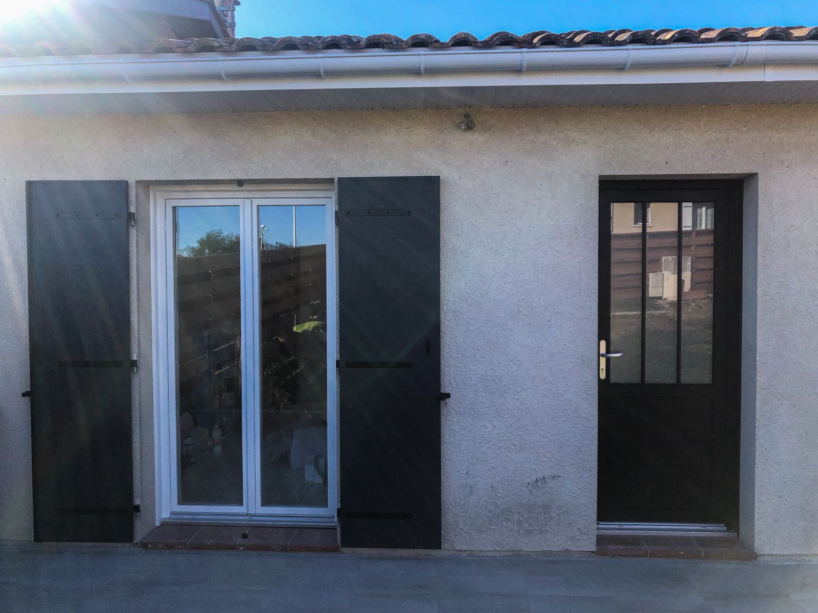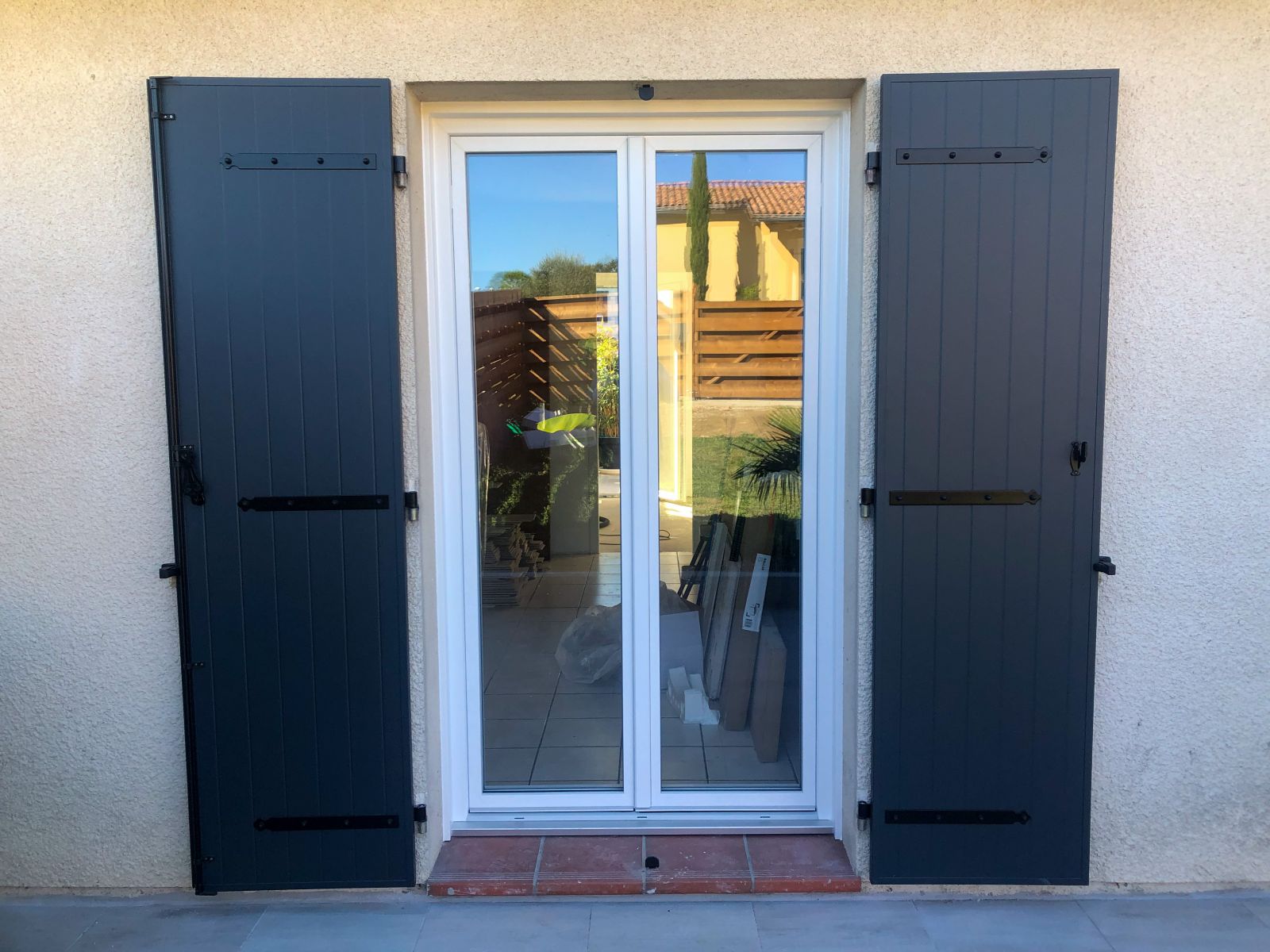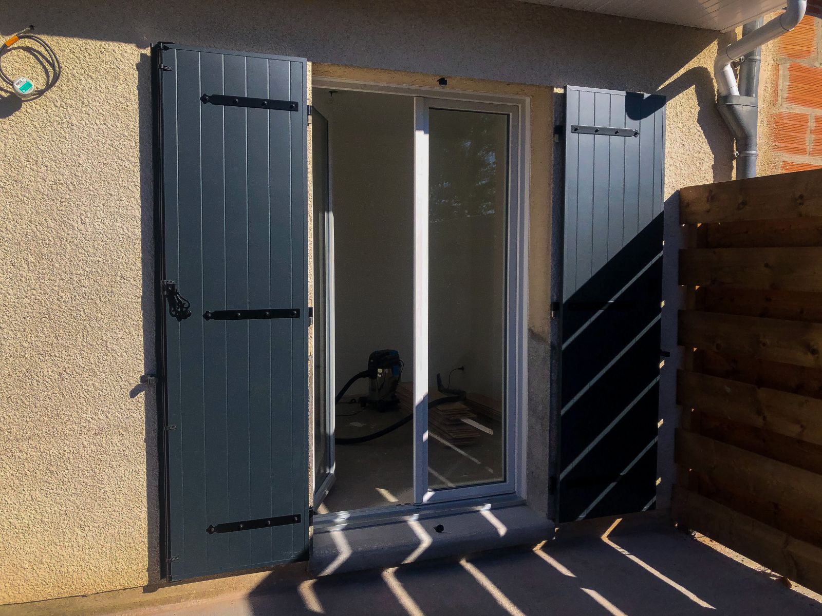 Nous avons posé 3 portes fenêtres en PVC, ainsi que leurs volets battants isolant en aluminum.- Couleur menuiseries : 9016 blanc glacial