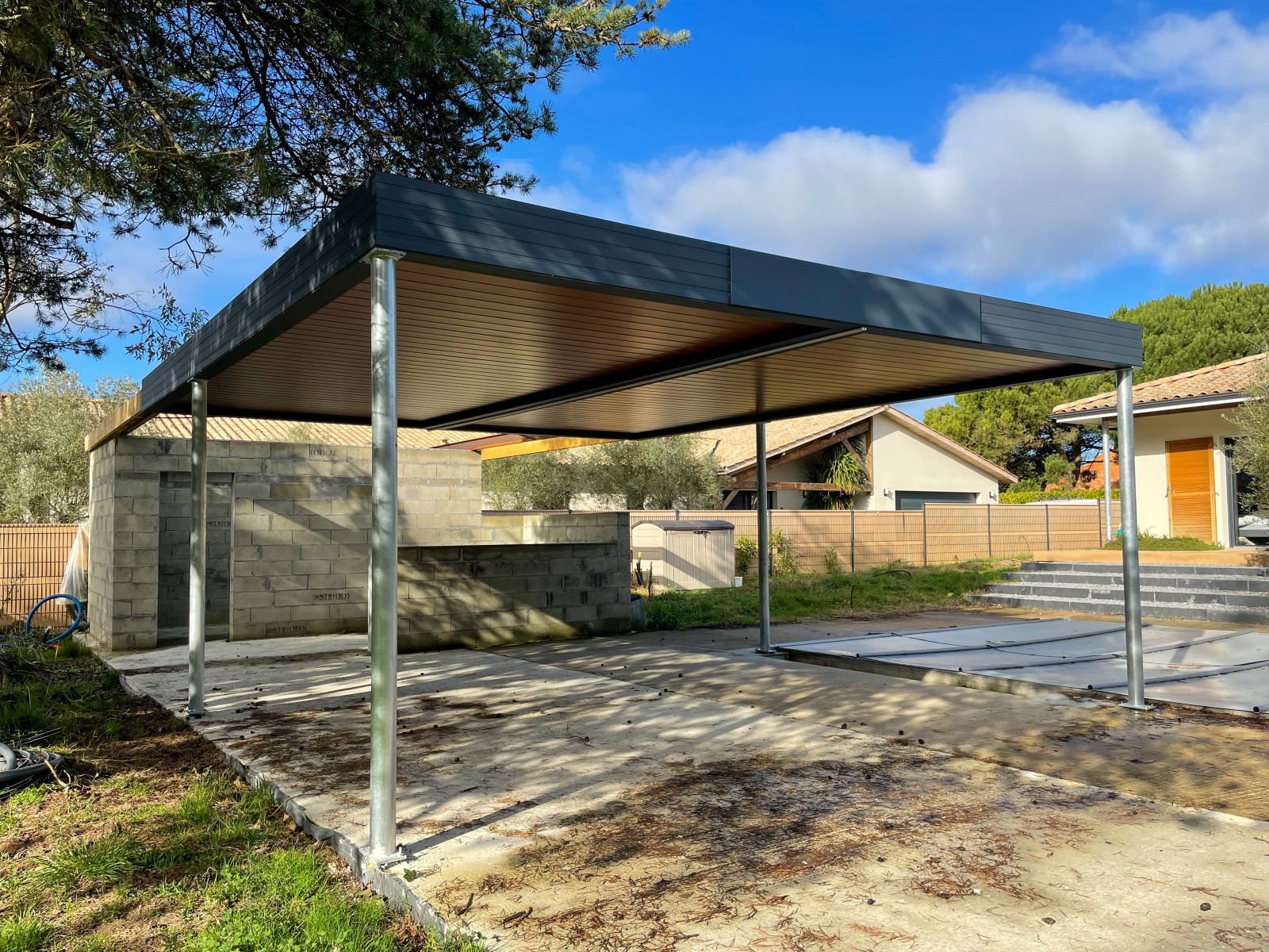 La pose de ces deux pergolas bioclimatiques a été réalisée en 2022.