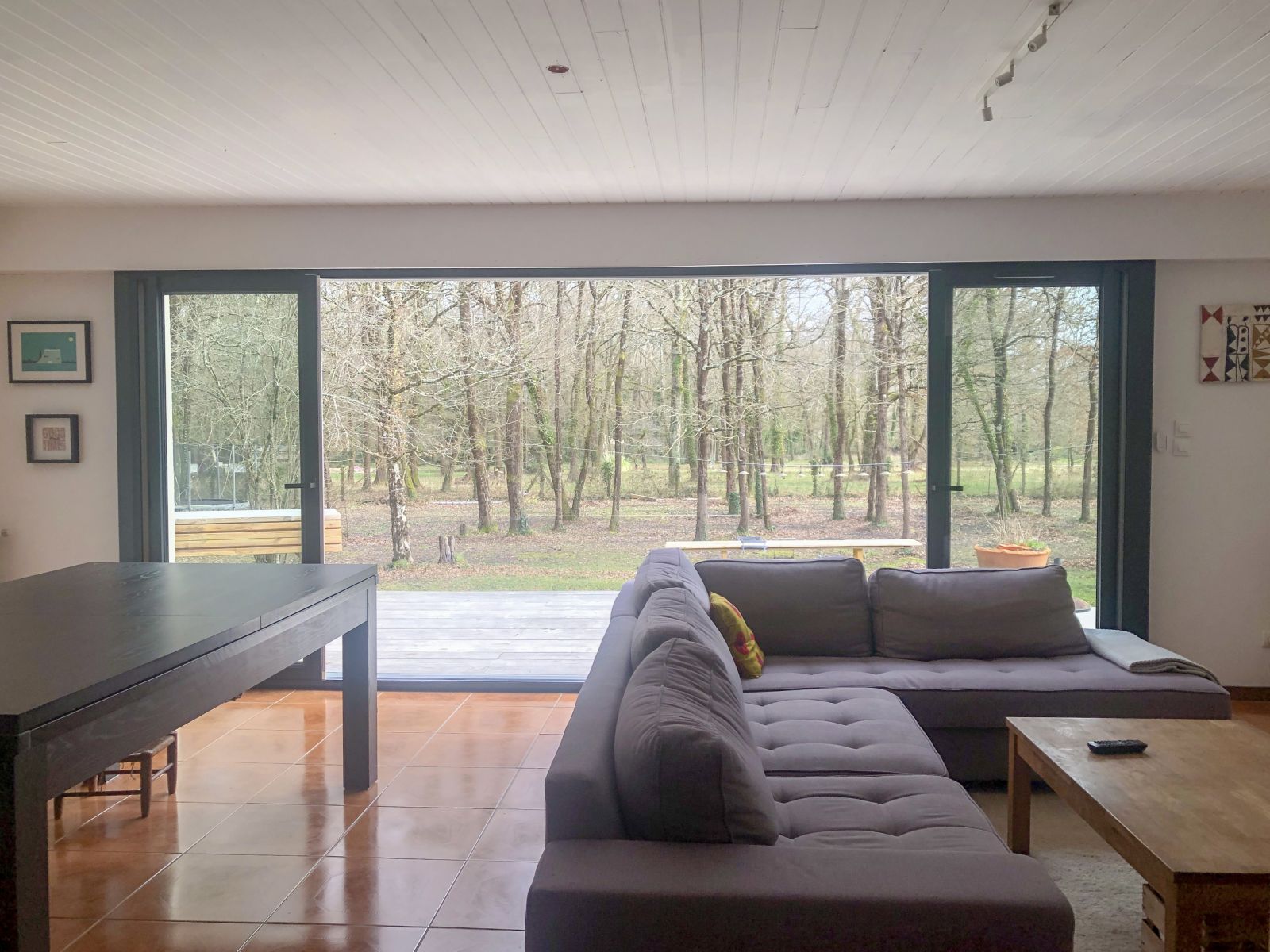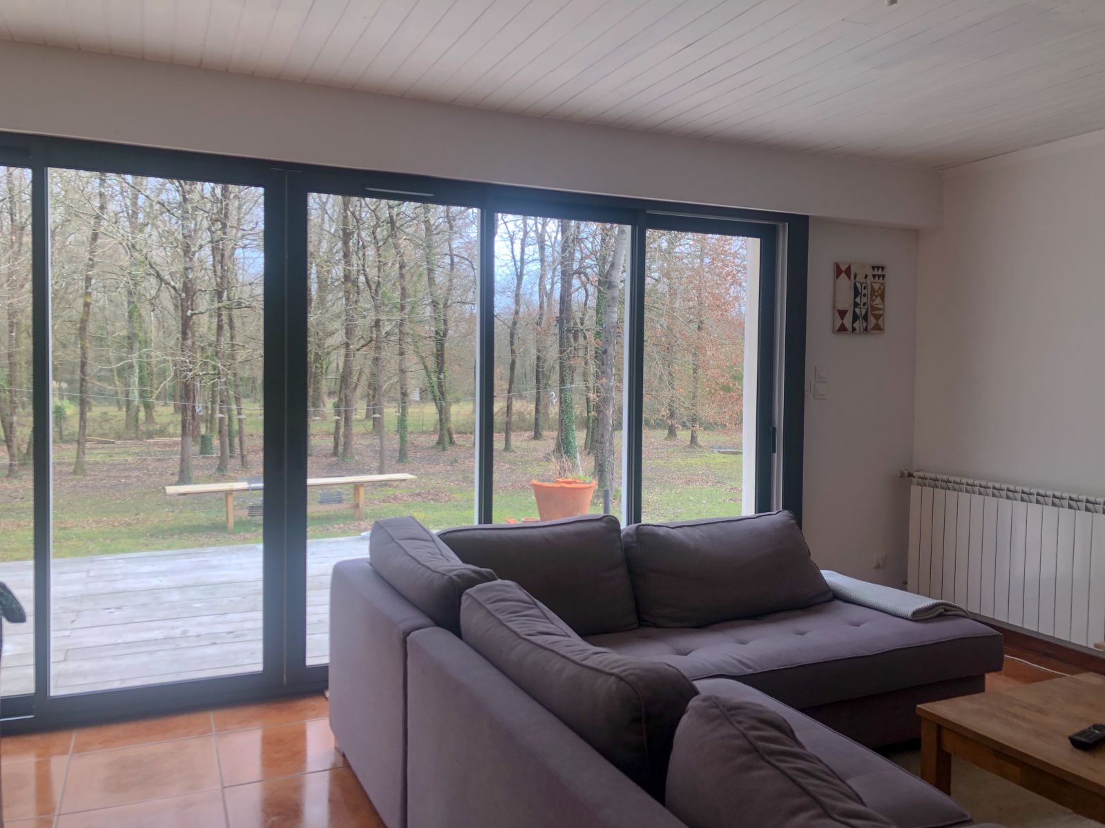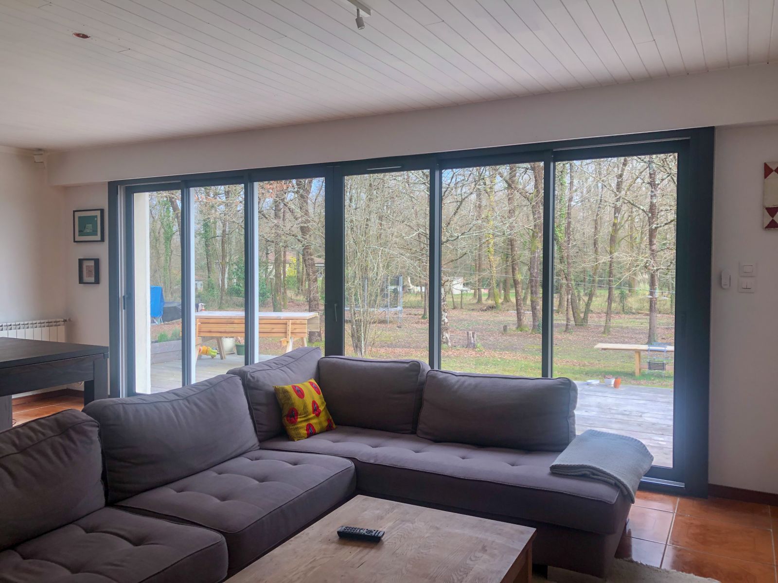 Concernant les coloris des menuiseries, nous retrouvons un gris antracite (RAL7016) sur la partie interieure et un blanc cassé sur la face exterieure. Le vitrag eutilisé est un double vitrage SKN154 à haute protection solaire.