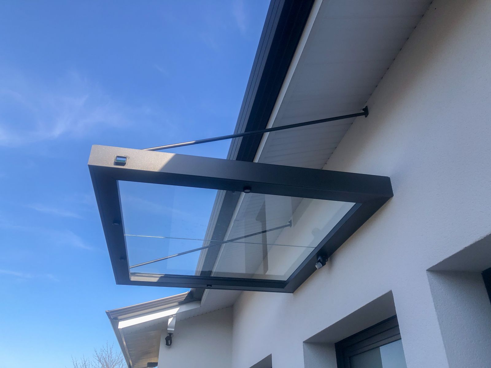 L'Atelier de la création, spécialiste en menuiseries extérieures en Gironde a réalisé la conception et pose d'une marquise à PESSAC (33).