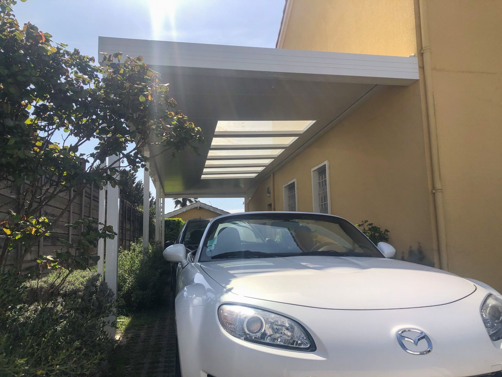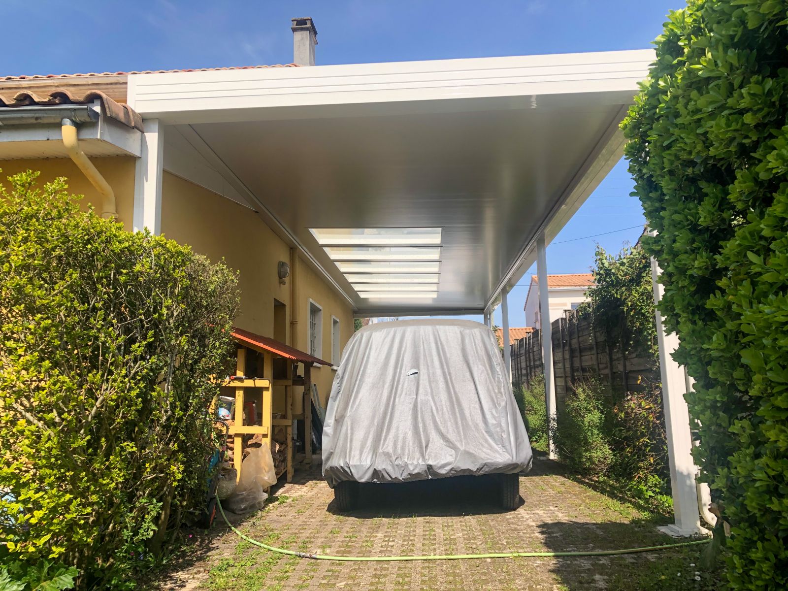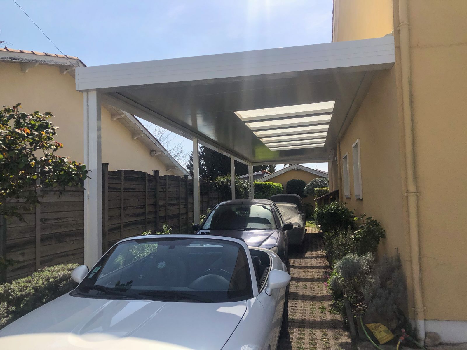 L'Atelier de la création, spécialiste en menuiseries extérieures en Gironde a réalisé la conception et pose d'un carport adossé en aluminium avec toiture en panneau sandwich à MERIGNAC (33).