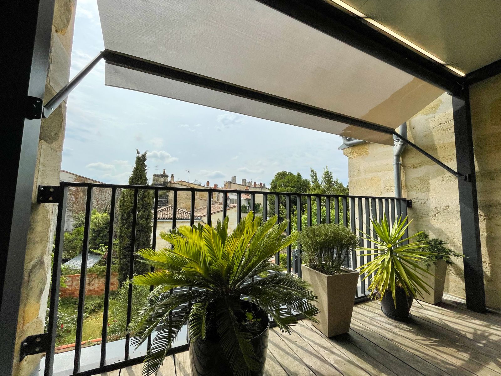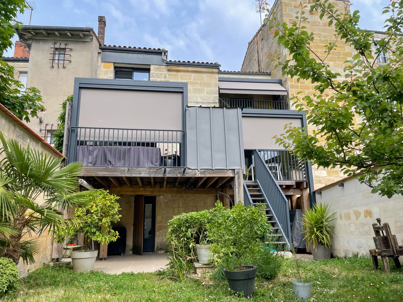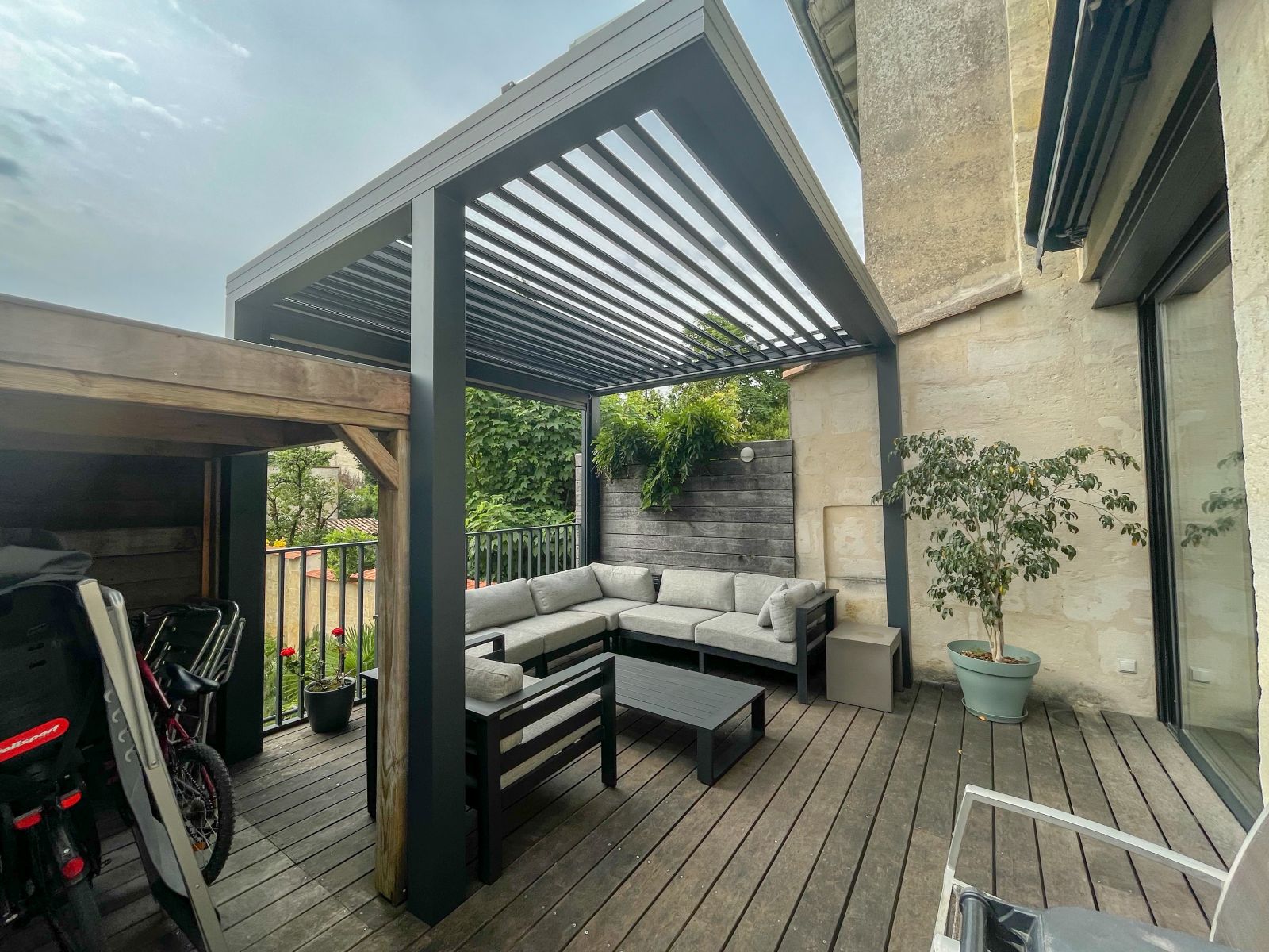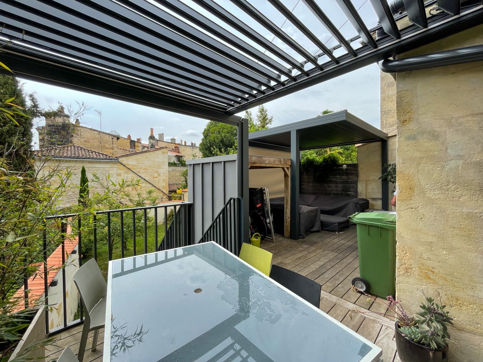 L'Atelier de la création, spécialiste en menuiseries extérieures en Gironde a réalisé la conception et la pose de deux pergolas bioclimatiques et d'une pergola toit plat avec stores intégré à BORDEAUX (33).