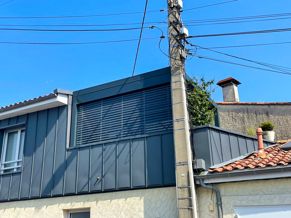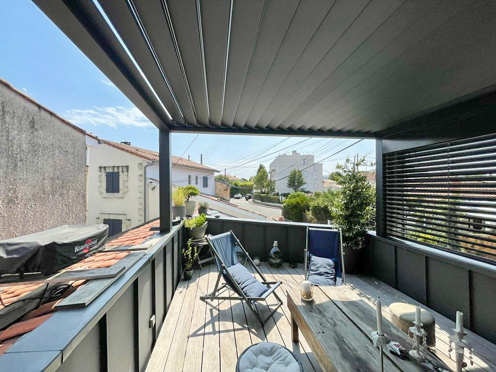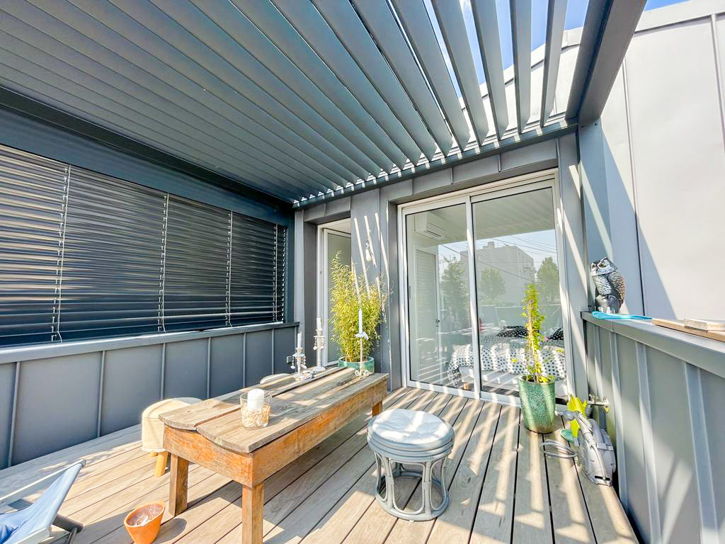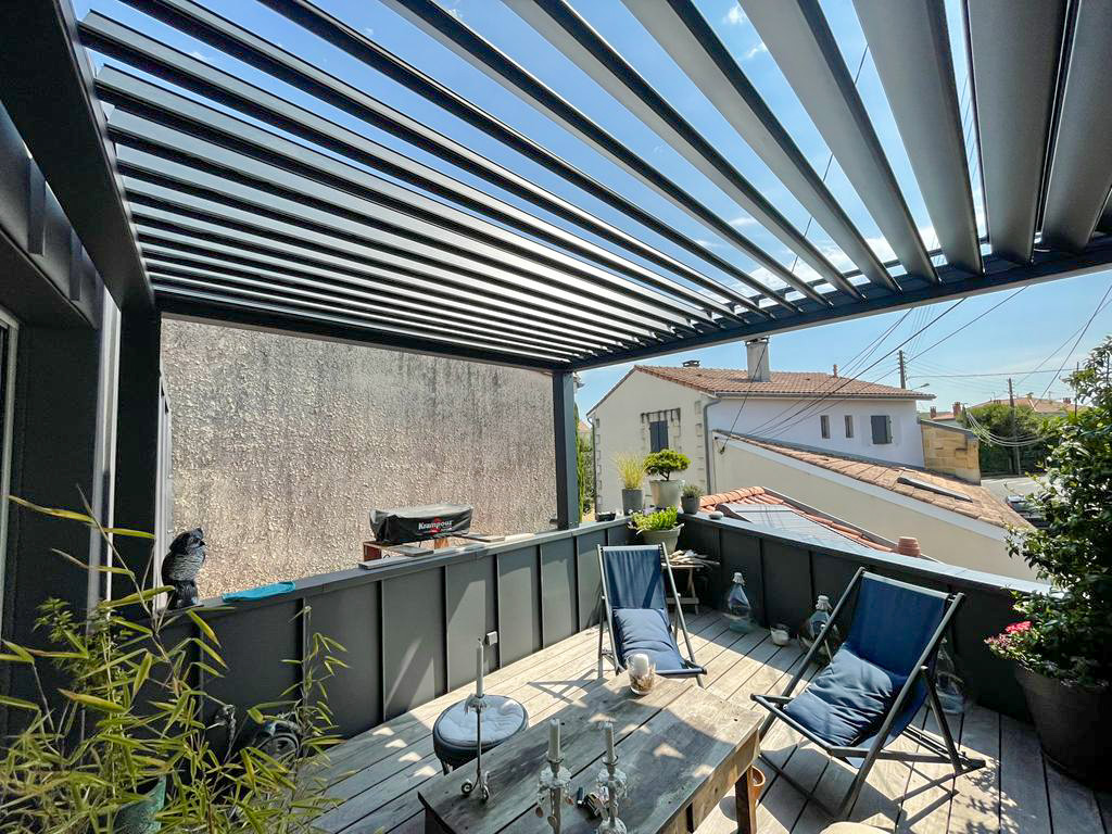 L'Atelier de la création, spécialiste en menuiseries extérieures en Gironde a réalisé la conception et la pose d’une pergola bioclimatique trapézoïdale à LE BOUSCAT (33).