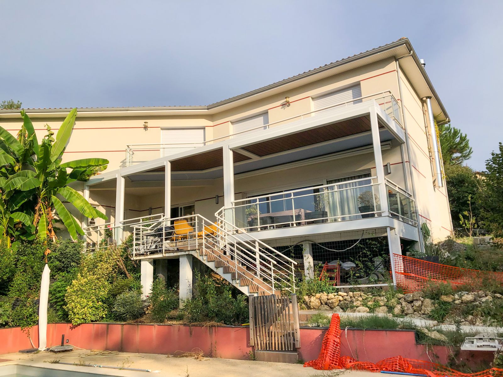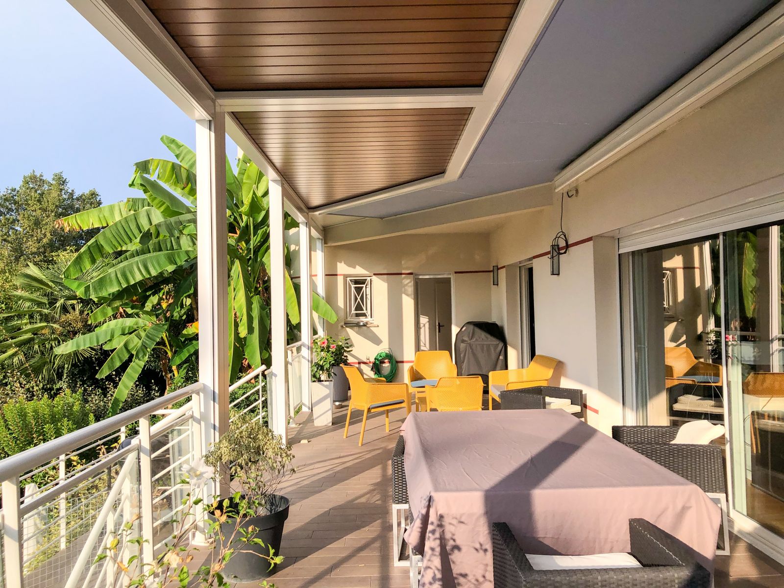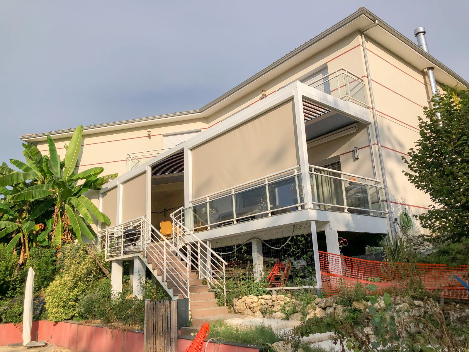L'Atelier de la création, spécialiste en menuiseries extérieures en Gironde a réalisé la conception et pose d'une double pergola bioclimatique à lames doubles peaux orientables, à CARIGNAN-DE-BORDEAUX (33).