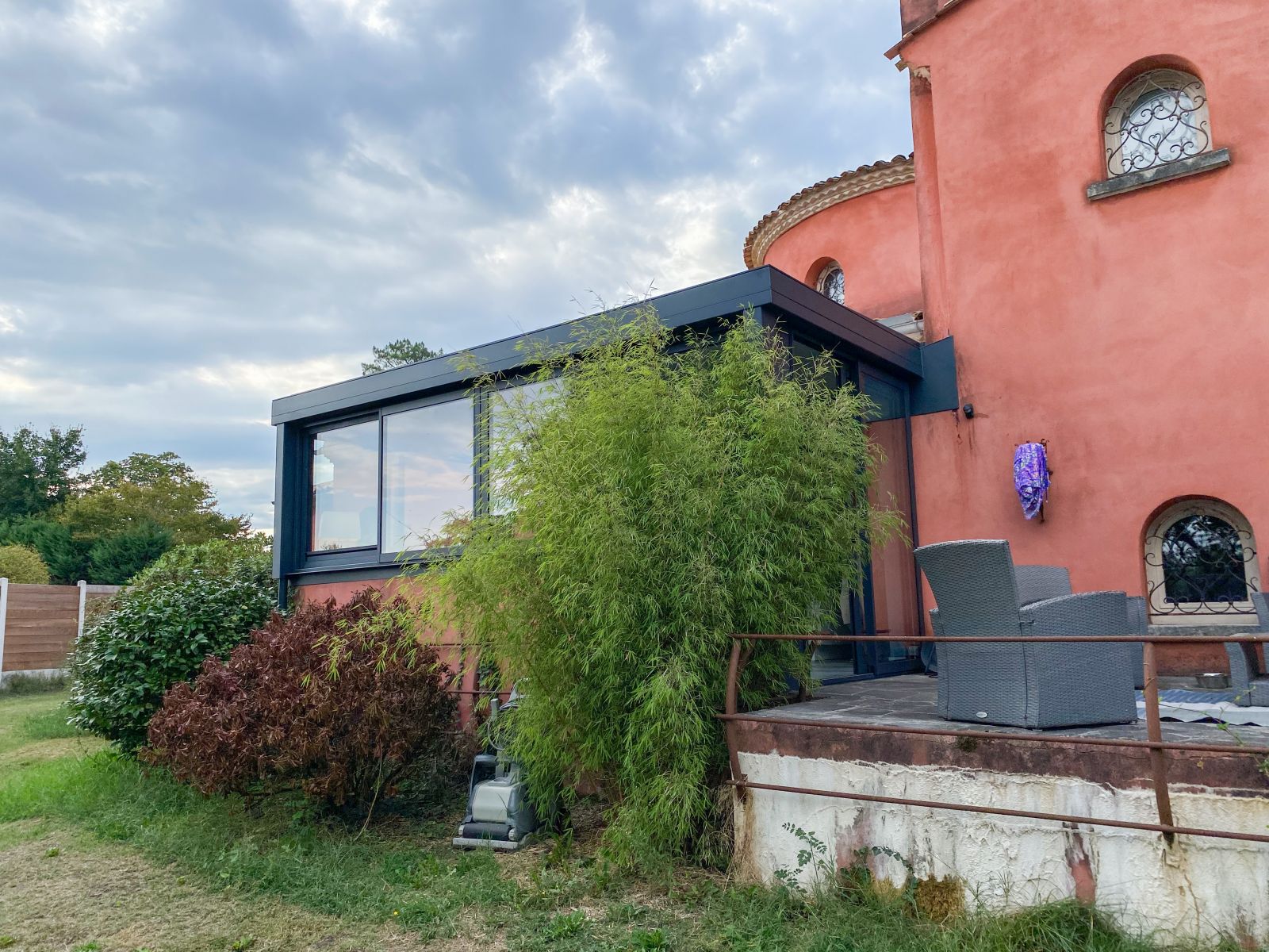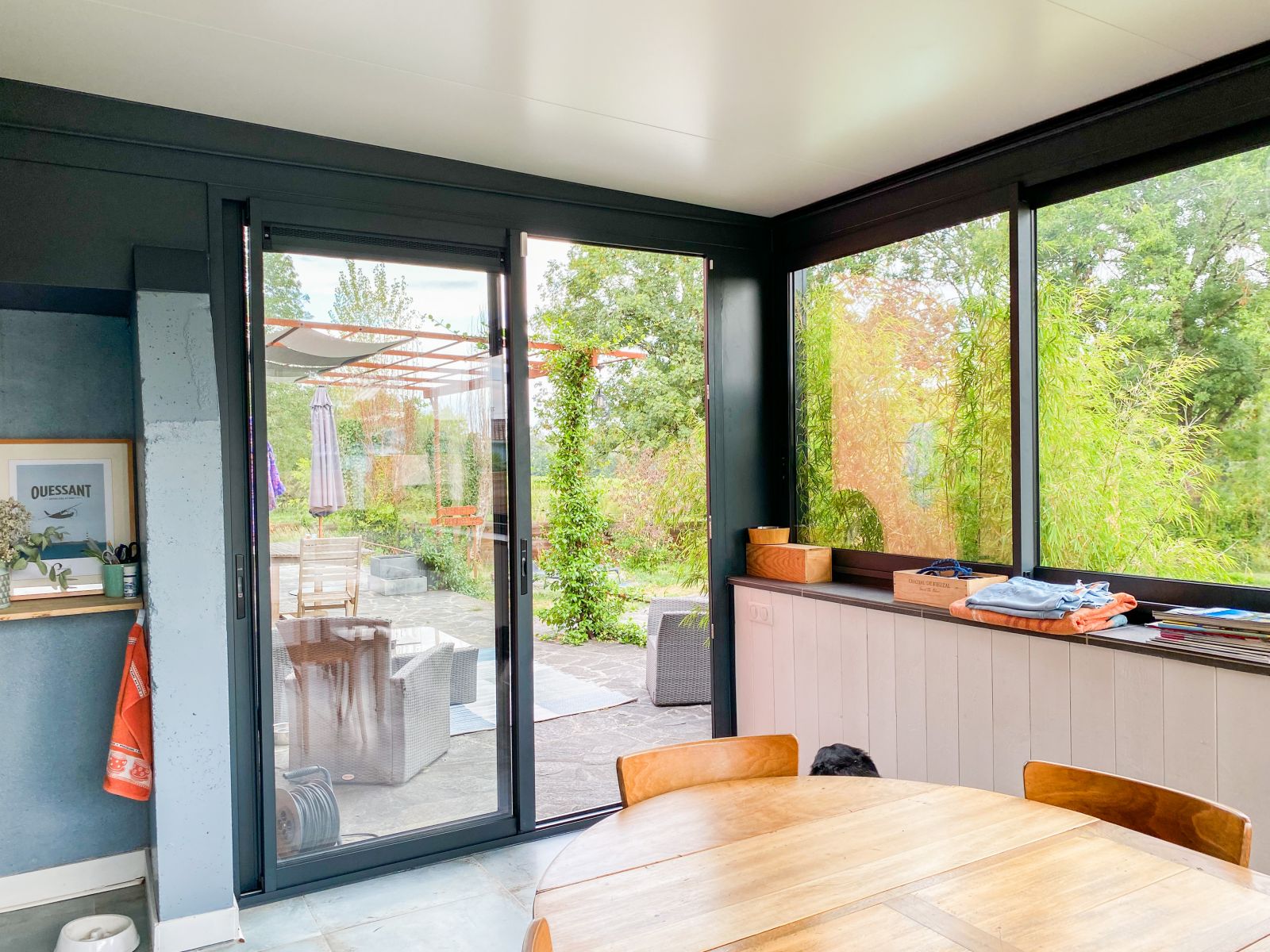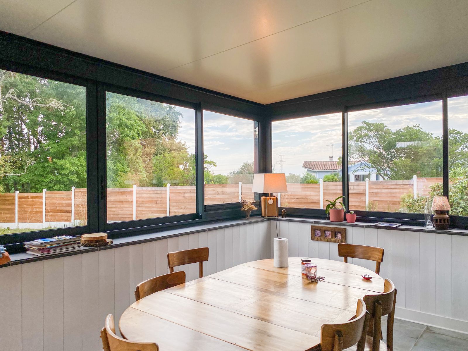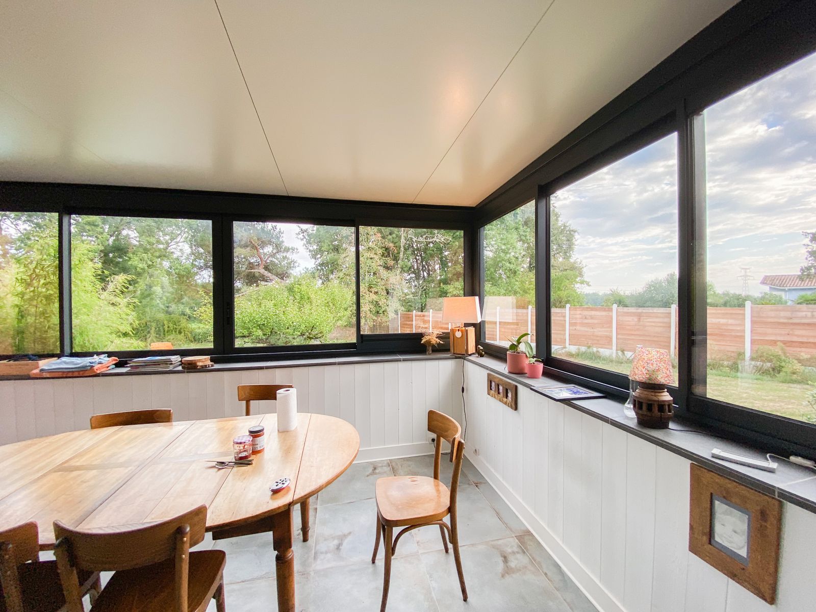 L'Atelier de la création, spécialiste en menuiseries extérieures en Gironde a réalisé la conception et la pose d’une véranda simple pente avec structure en aluminium à LA BREDE (33)