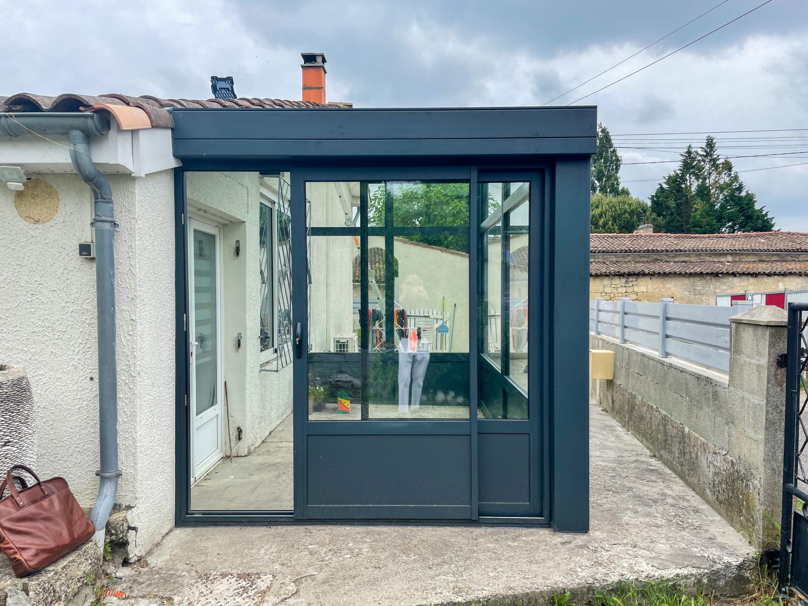 L'Atelier de la création, spécialiste en menuiseries extérieures en Gironde a réalisé la conception et pose d’une véranda simple pente et structure en aluminium à SAINT-GENES-DE-FRONSAC (33).