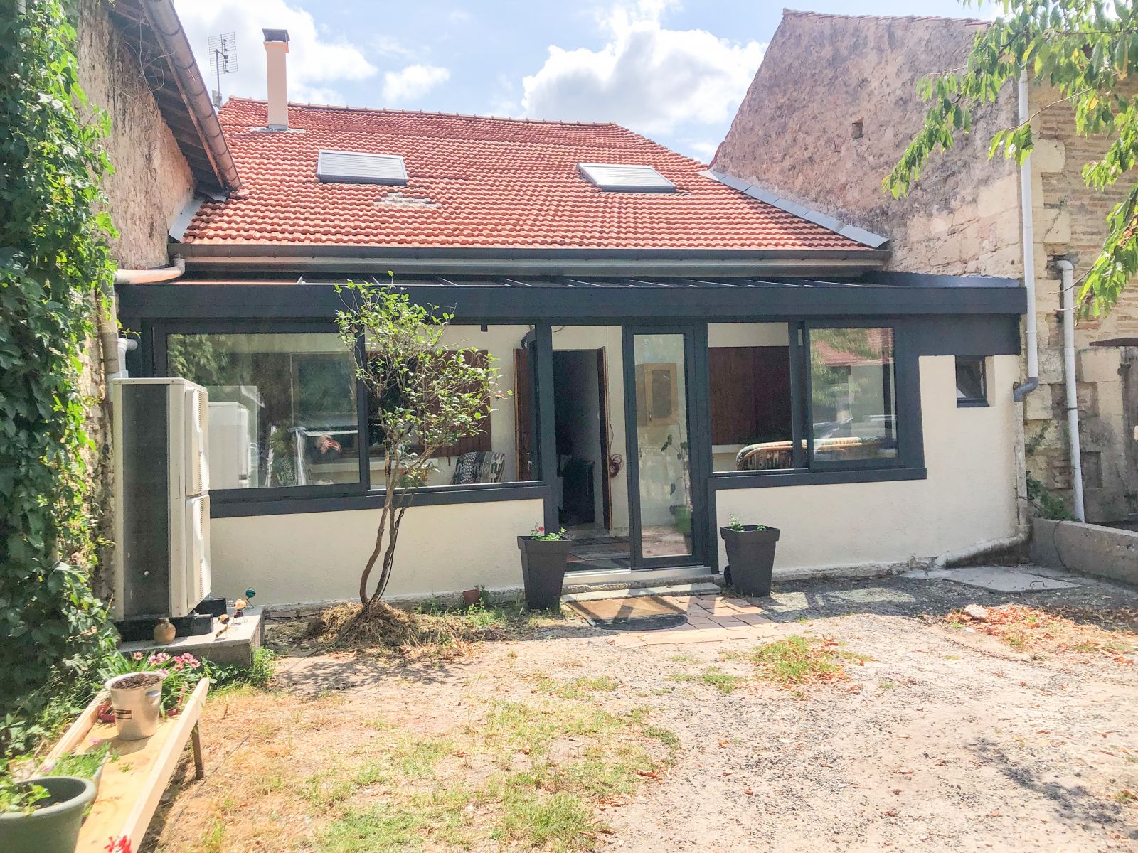L'Atelier de la création, spécialiste en menuiseries extérieures en Gironde a réalisé la conception et pose d’une véranda simple pente et structure en aluminium à LARUSCADE (33)