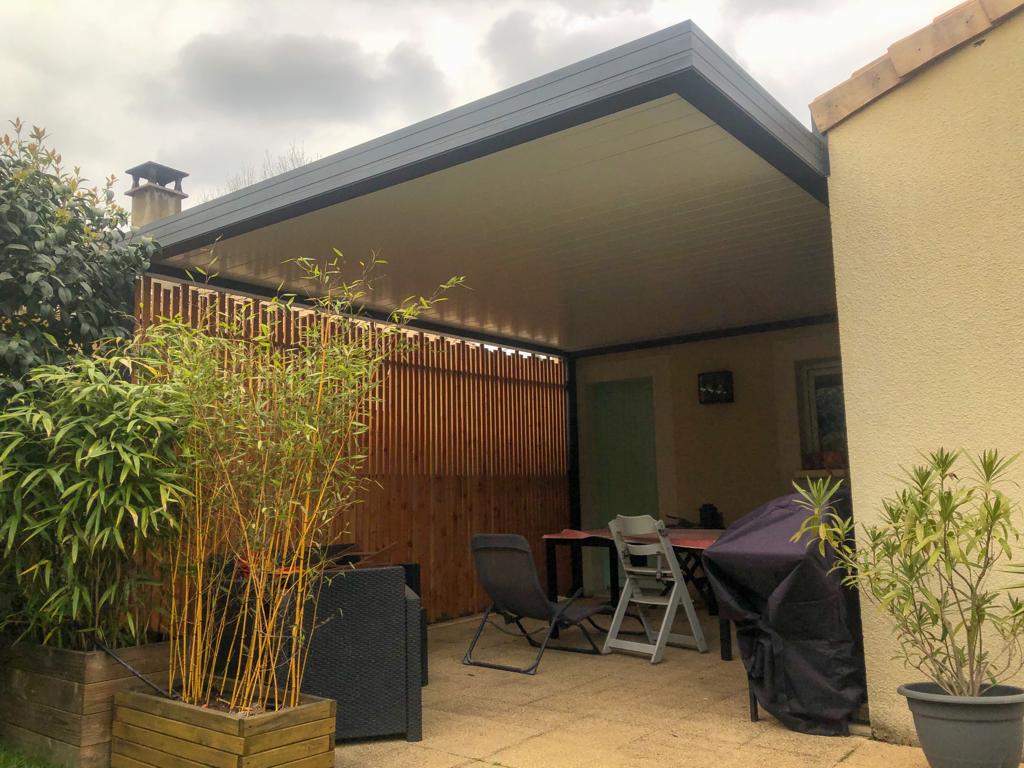 L'Atelier de la création, spécialiste en menuiseries extérieures en Gironde a réalisé la conception et la pose d’une pergola bioclimatique à SAINT-LOUBES (33).