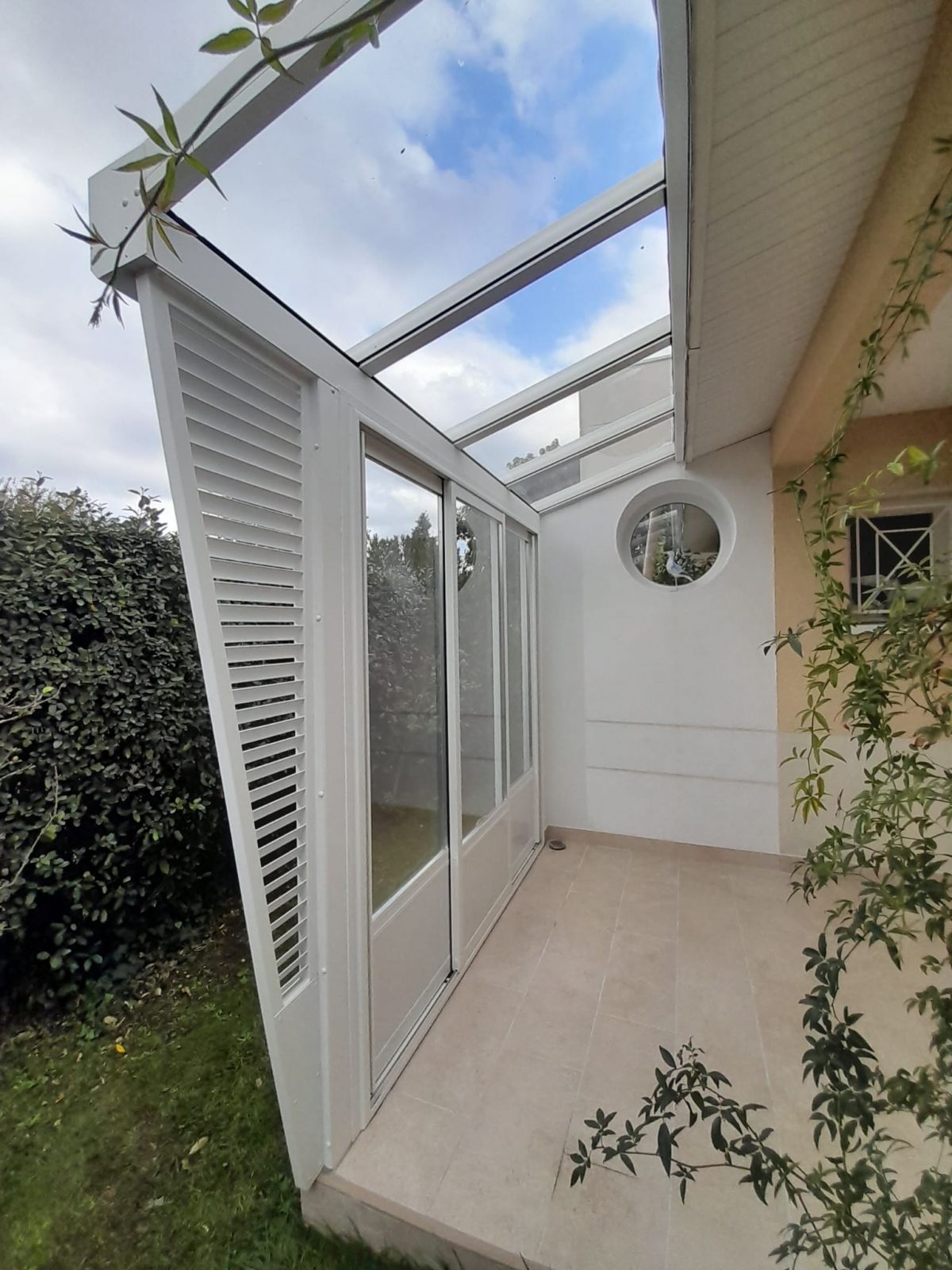 L'Atelier de la création, spécialiste en menuiseries extérieures en Gironde a réalisé la pose d'un SAS d'entrée en aluminium et d'un brise vue à LATRESNE (33).
