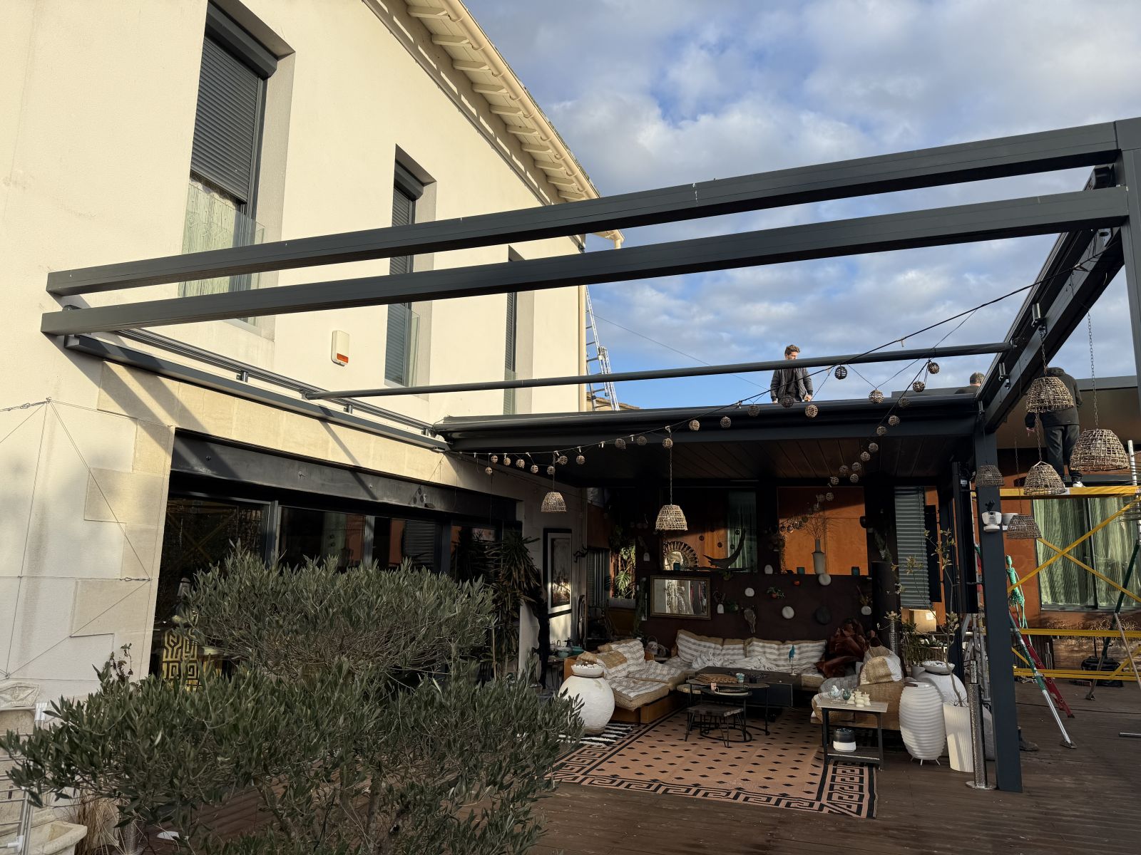 L'Atelier de la création, spécialiste en menuiseries extérieures en Gironde a réalisé la pose de cette pergola toile à Artigues (33)