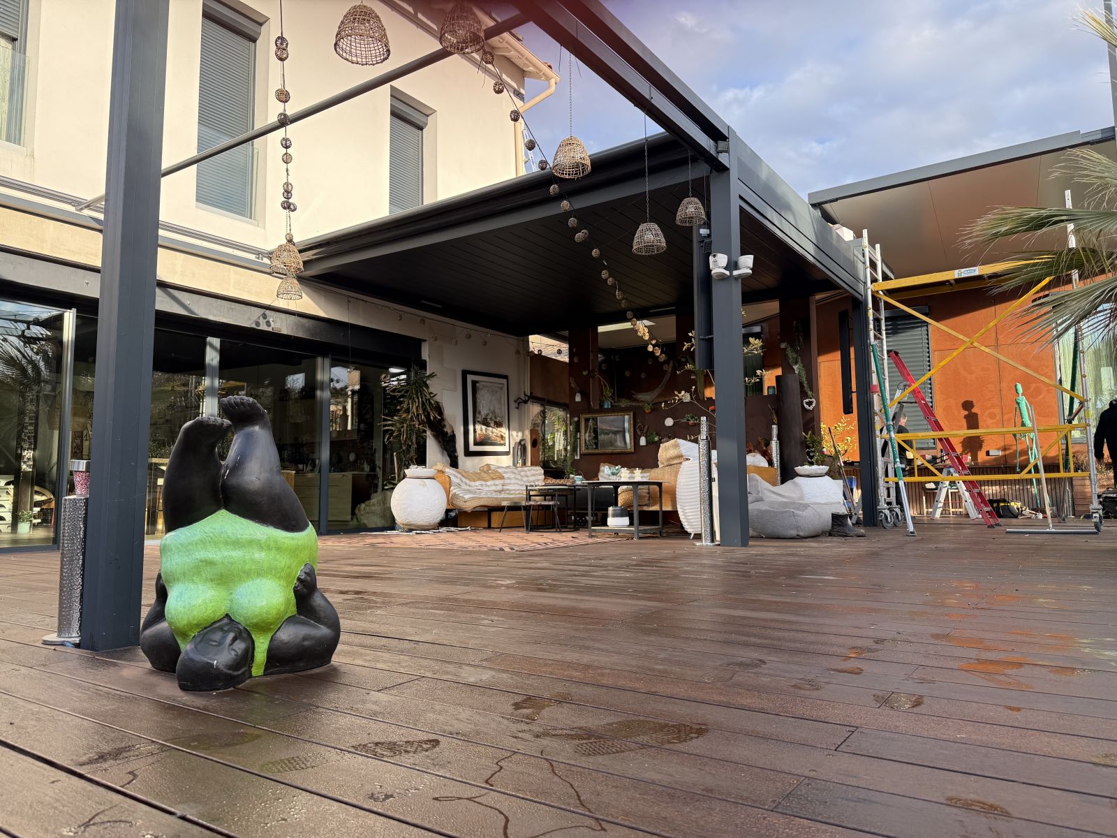 Concernant les spécificités de ce projet : - Double structure avec pergola toile Dickson Orchestra Max, résistante aux intempéries