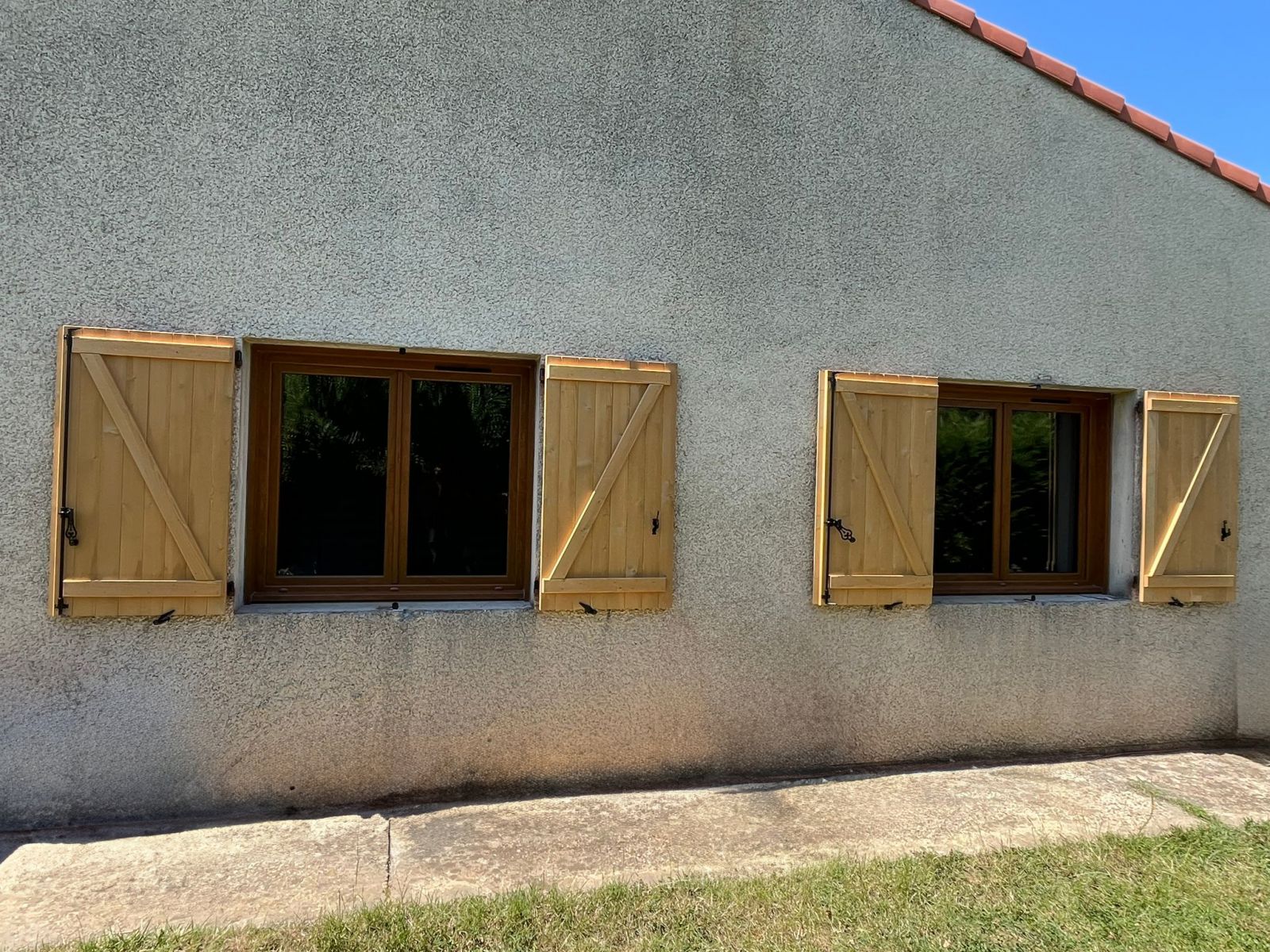 Concernant les spécificités de ce projet : - Pose de volets battants en bois naturel, hydrofugé, traité insecticide et fongicide 🛠️