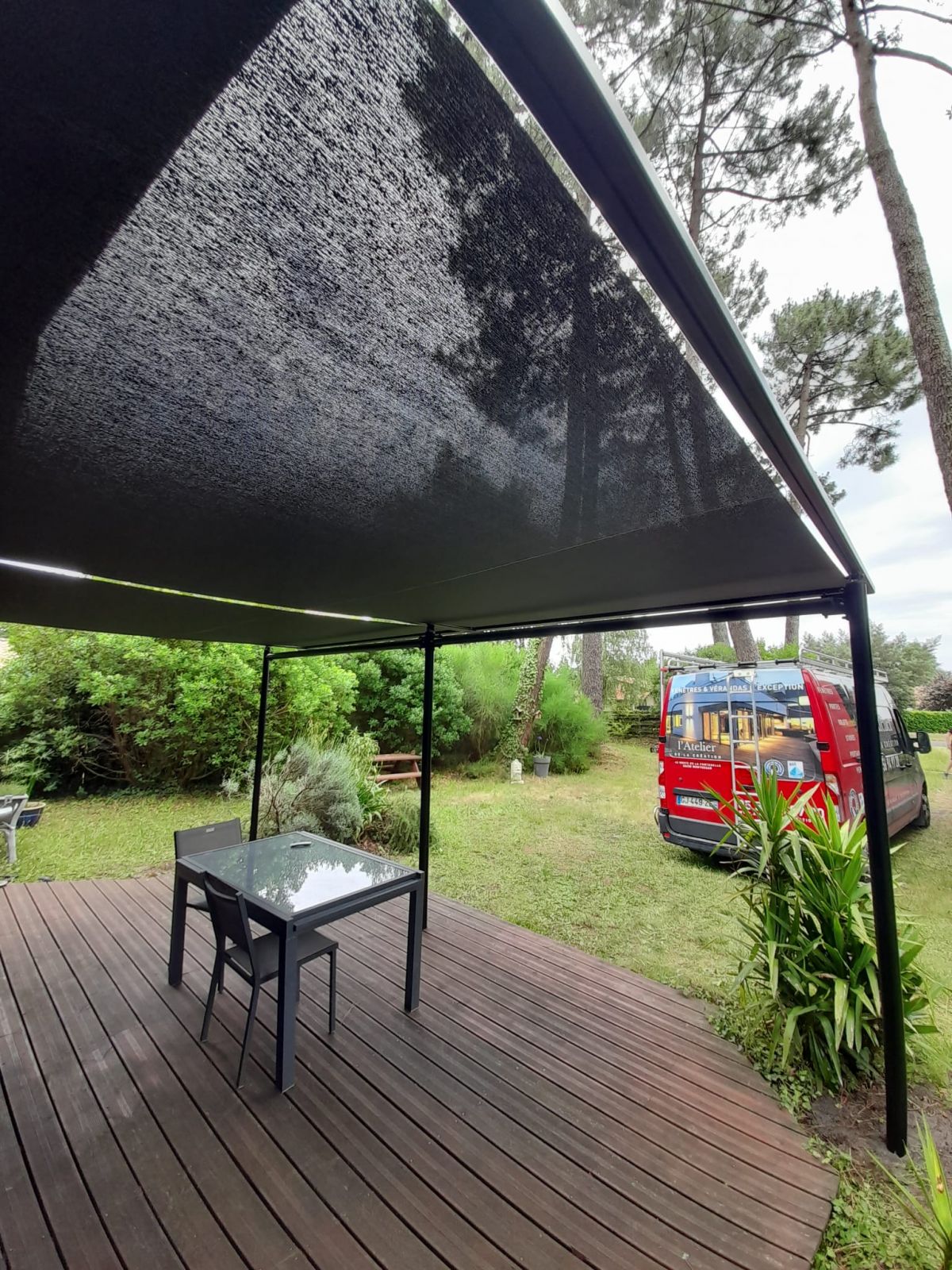 L'Atelier de la création, spécialiste en menuiseries extérieures en Gironde a réalisé la pose d'une pergola toile sur mesure à Arès (33).